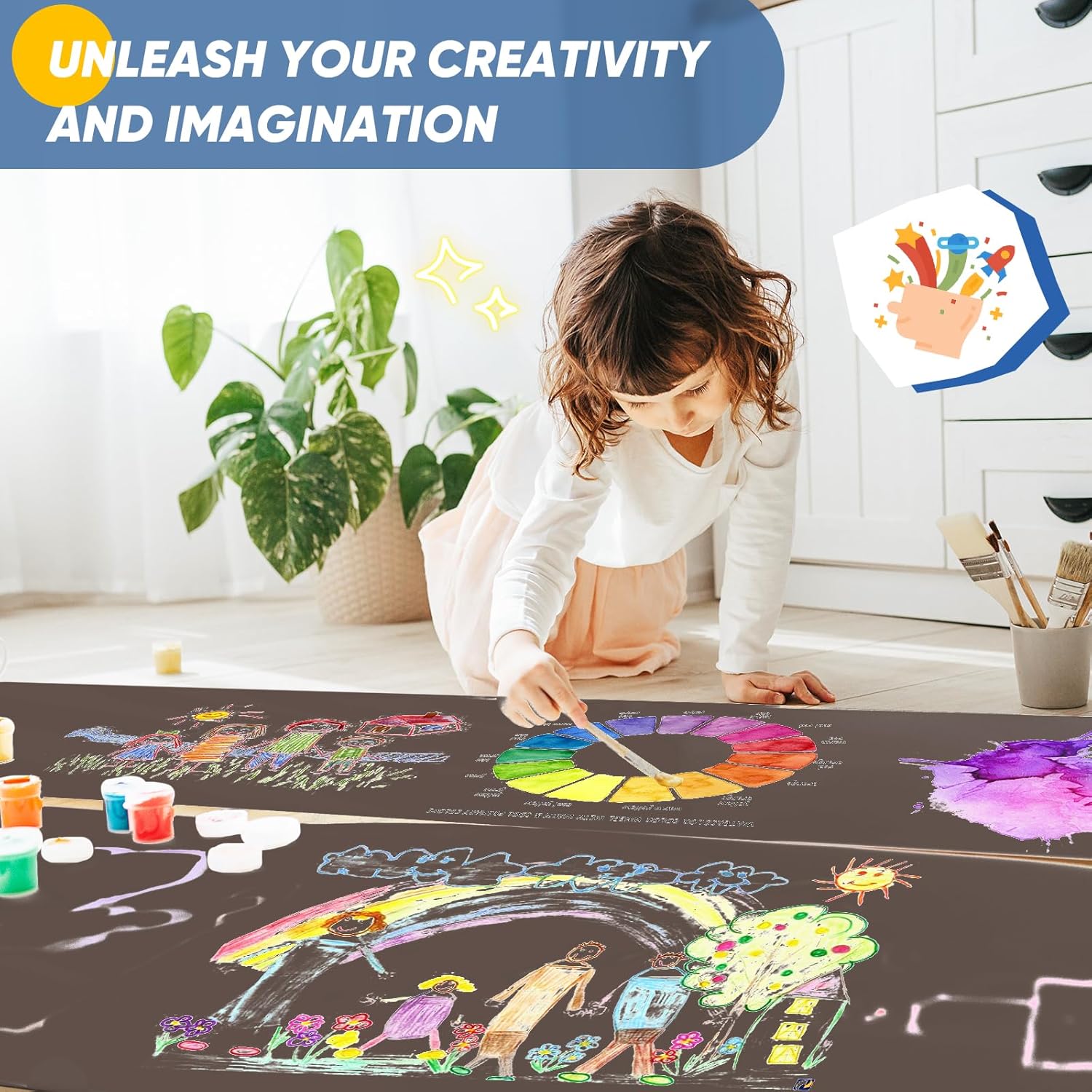 - 【Works with Different Materials】 Our kraft paper is unwaxed and uncoated, which means long-lasting art that won't fade away with time. You can use this craft paper roll with acrylic paints, oil paints, chalk, crayons, markers, gel pens, felt tip pens, fine point pens, watercolors, colored pencils, finger paints and tempera, and there is no smearing or bleeding to protect your table from the different art mediums.