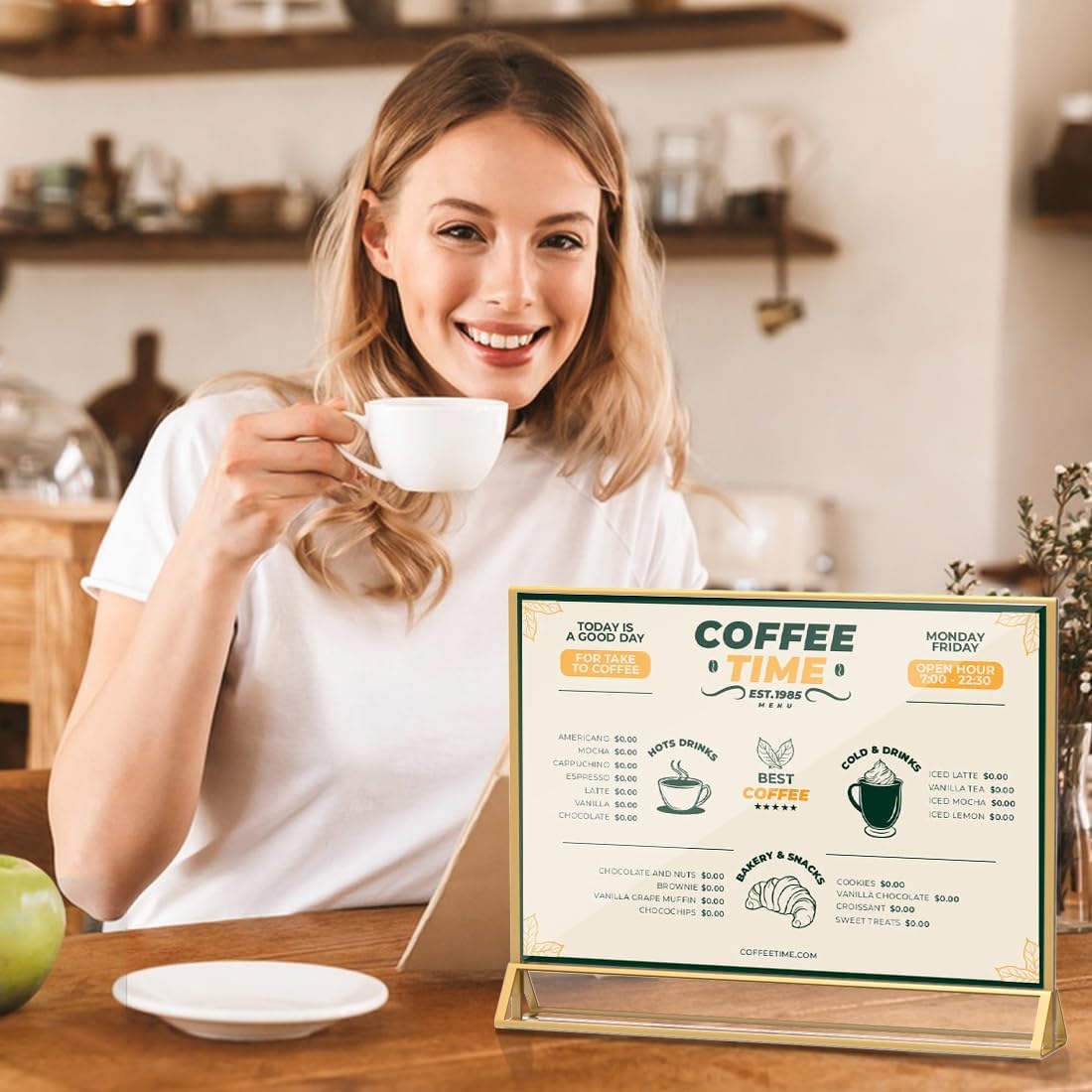 - 【Double Sided Display】This 11X 8.5 gold sign holder is designed with a vertical double sided stand that clearly and efficiently displays pictures and posters