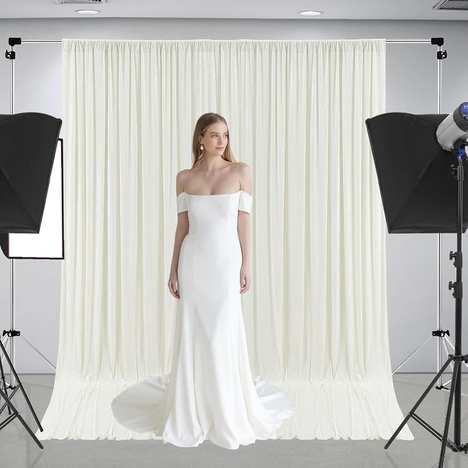 10 x 10 Feet Ivory White Backdrop Curtain for Partie, Background Curtains for Photoshoot, Birthday, Wedding, Halloween, Thanksgiving, Christmas Day, New Year Party Decorations 5Ft x 10Ft, 2 Panels