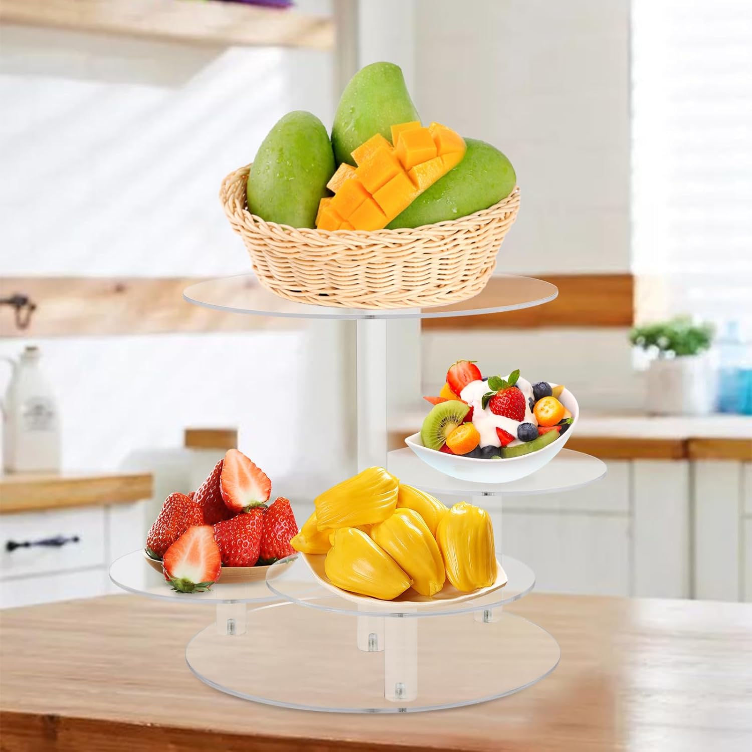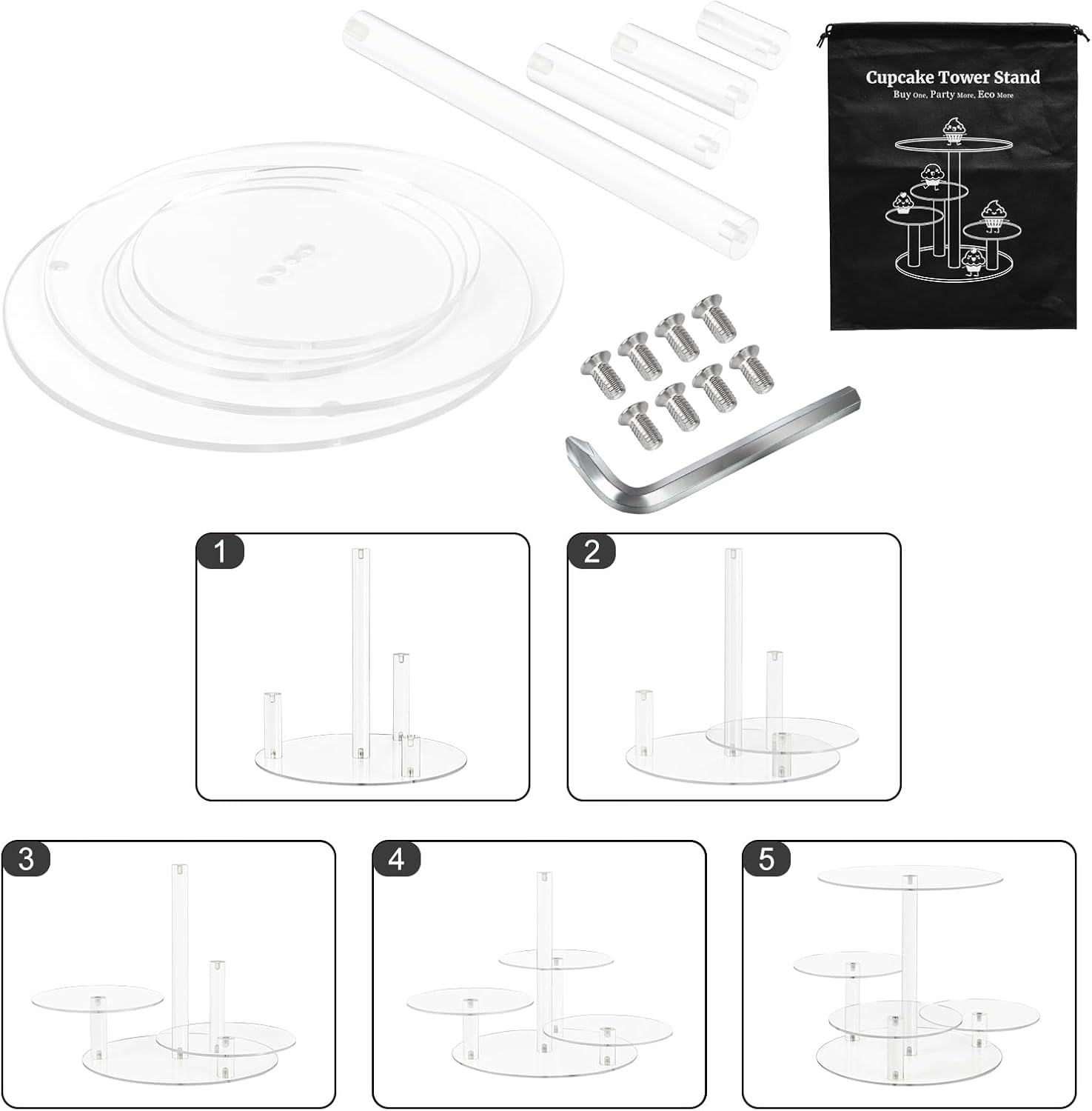 - 🎄[Premium Cupcake Stand] This tiered cake and cupcake combo stand is made of 4mm thick premium acrylic which has a solid construction and unique design. The edges of the acrylic are perfectly clear and well polished, safe to use.