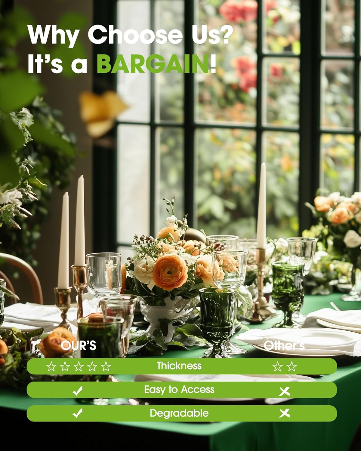 - FOR ALL OCCASIONS: With the universal size and multiple color options, our disposable table cloths are widely applicable to kinds of events, parties, church functions, work events, one-time use, and even practical everyday use.