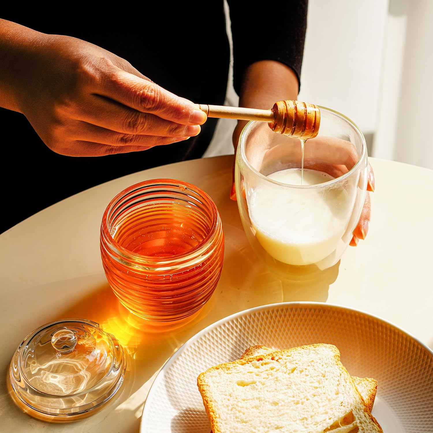 - Convenient Dipper: The honey dipper is crafted from natural wood, ensuring a smooth and easy drizzling experience. It allows for precise portion control without creating a sticky mess