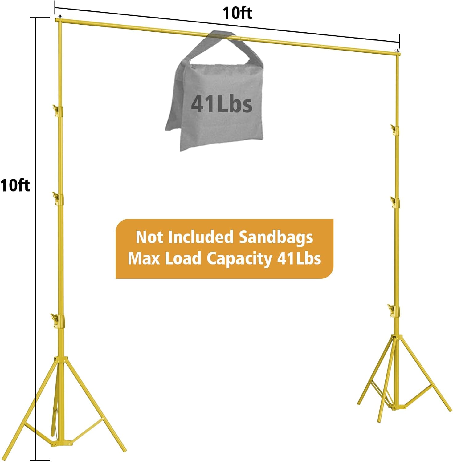 10x10Ft Photography Backdrop Stand - Titanium Gold, Adjustable Backdrop Stand for Parties, Photo Back Drop Stand, Background Support Stand with Carry Bag,Clamp.