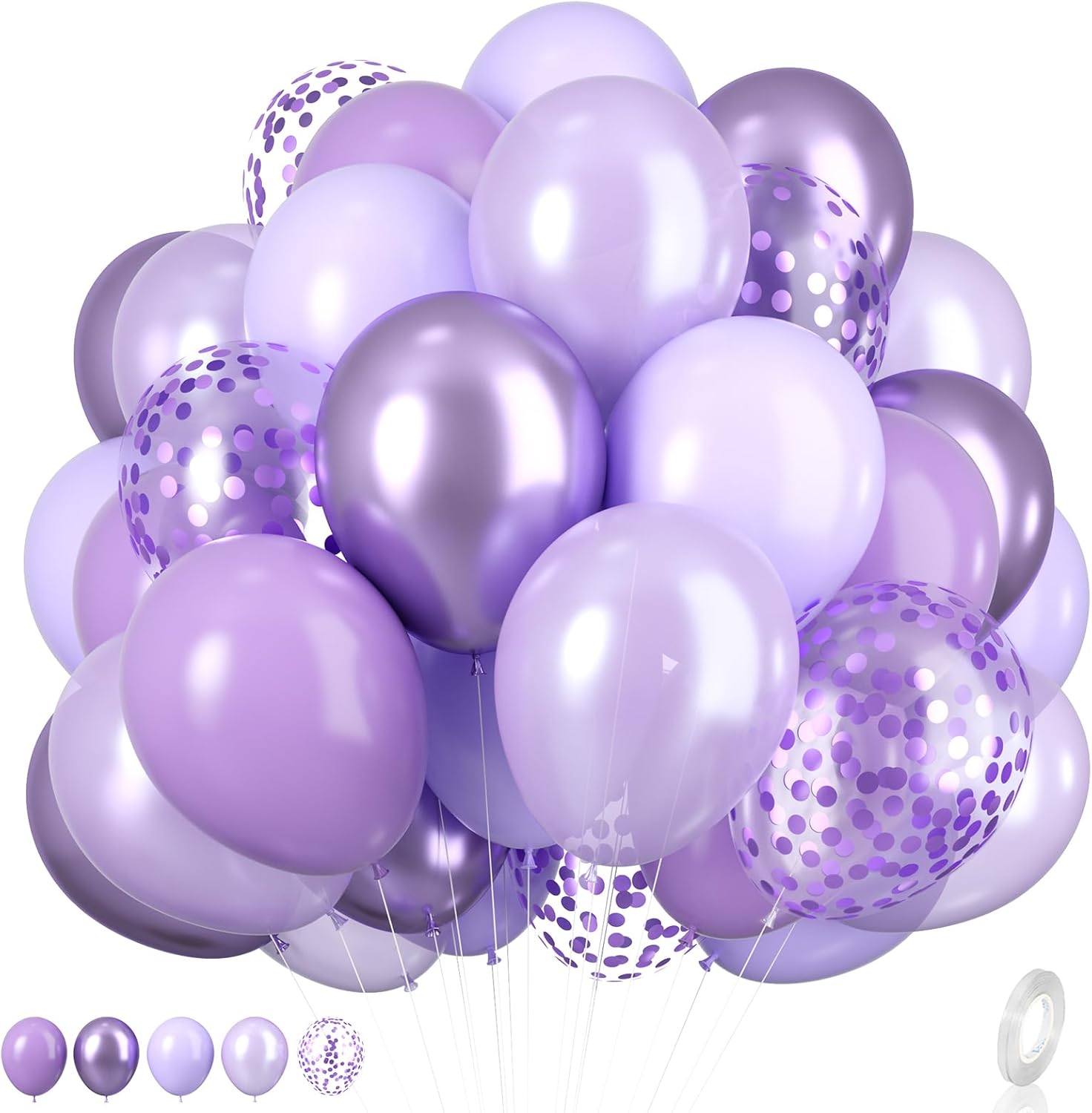 Biapian Purple Party Balloons Set, 12inch Lavender Balloon Pastel Purple-Lilac Ballons Metallic Confetti Purple Balloons For Girls Birthday Baby Shower Bridal Wedding Party Decorations