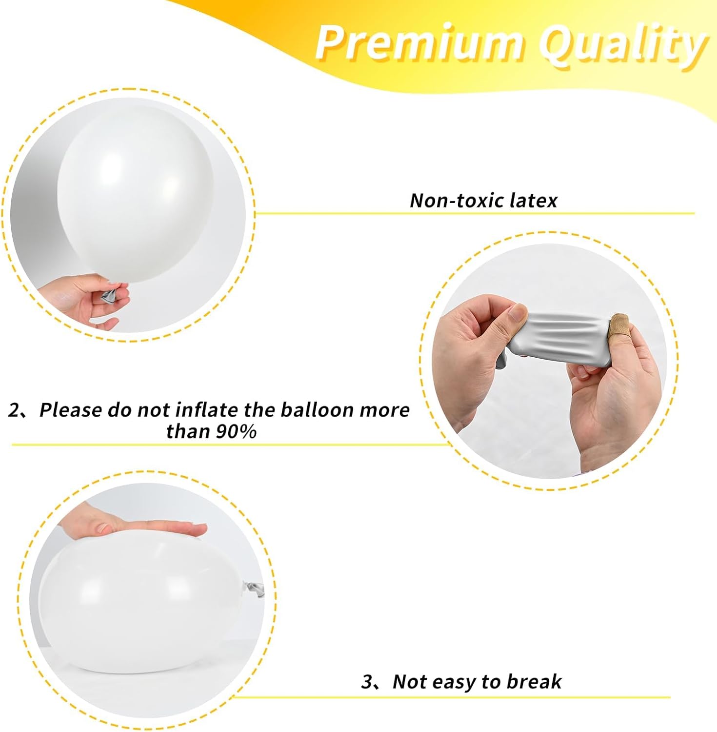 - Premium-Quality Balloons: Crafted from natural, high-grade latex, each balloon undergoes rigorous manual testing to ensure exceptional elasticity and safety. Suitable for both adults and children, these balloons are an ideal party decoration kit, suitable for inflation with air or helium, and recommended for use with balloon pumps. They are non-toxic, guaranteeing a secure and enjoyable celebration.