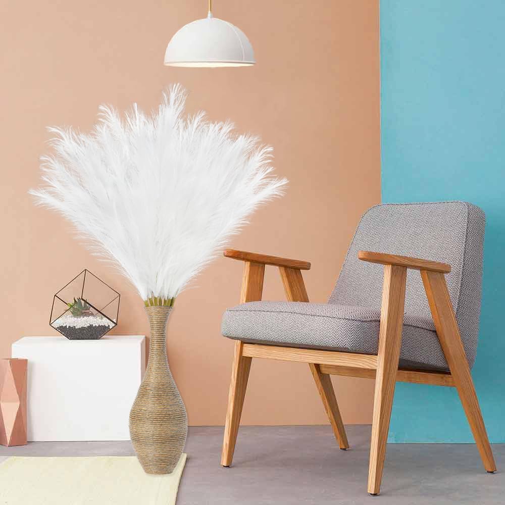 - White Pampas Grass Decor: You will get a pack of 8pcs artificial pampas grass, each stem 35”, and the heads of each stem is designed you can fluff them up for a fuller look, create a chic minimalist, or Bohemian modern display to complement your existing home arrangement
