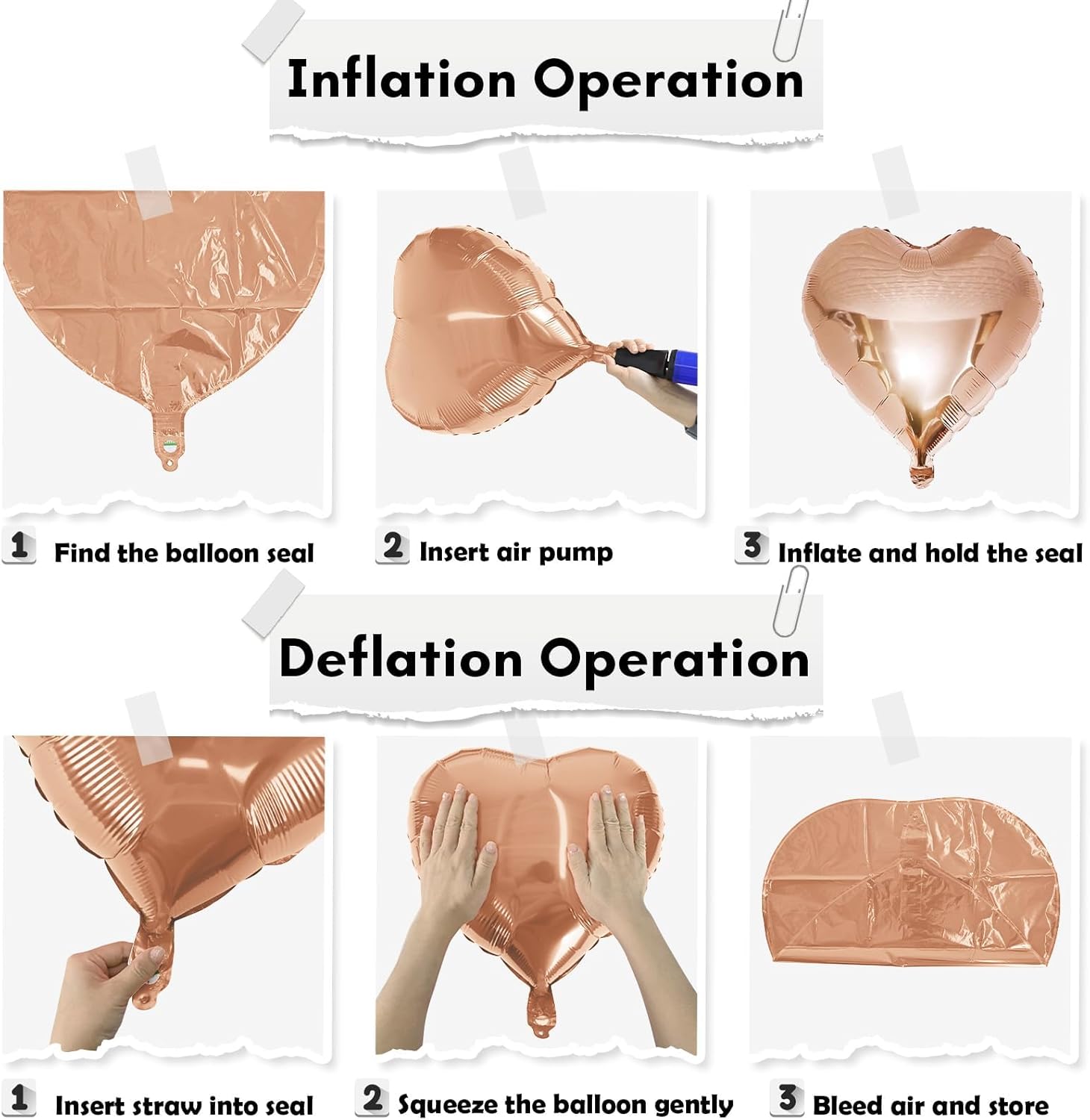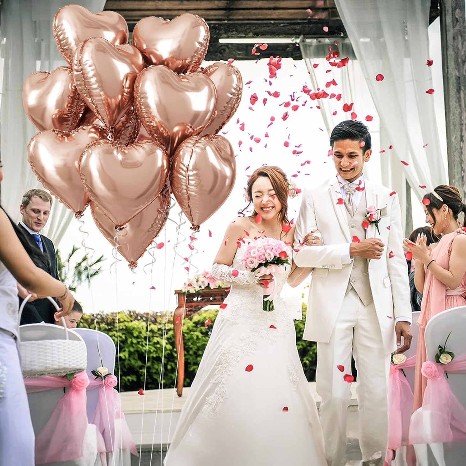 - Rose Gold Heart Balloons: 10pcs 18 inch rose gold heart foil balloons.