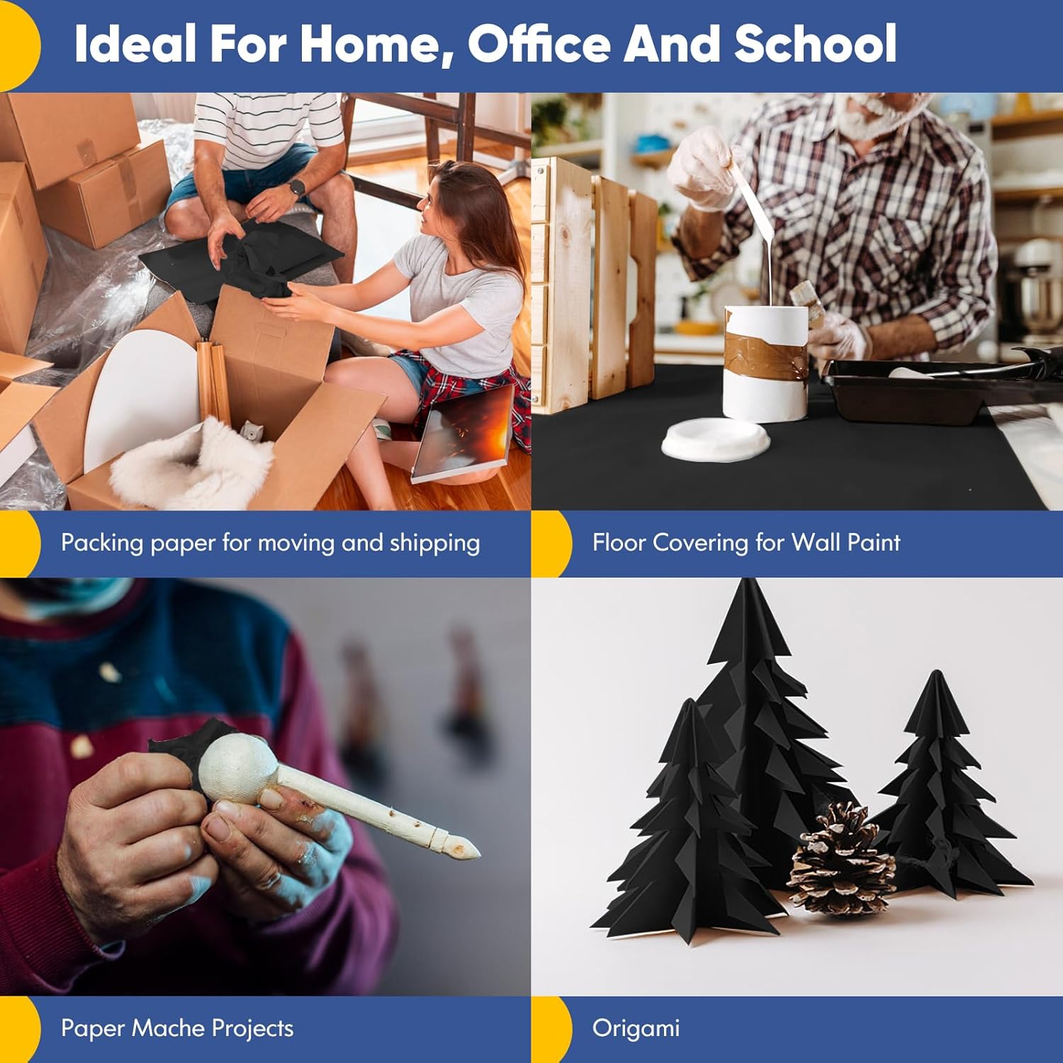Vanhench Black Art & Construction Paper 17.6"×670", Black Kraft Paper Roll for Gifts Crafts Bouquet Flower Wrapping, Moving Supplies, Poster Bulletin Board Paper