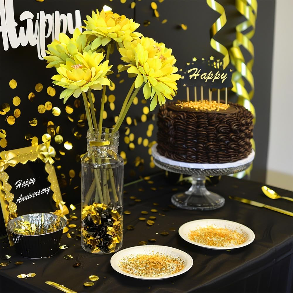 HappyFiller Fall Halloween Decoration Fake Ice Rocks Acrylic Nuggets Gems Stones Pirate Jewels for Wedding Centerpieces Vase Fillers,Graduation Party Table Scatters,Home Accents,Gold Black,14 OZ