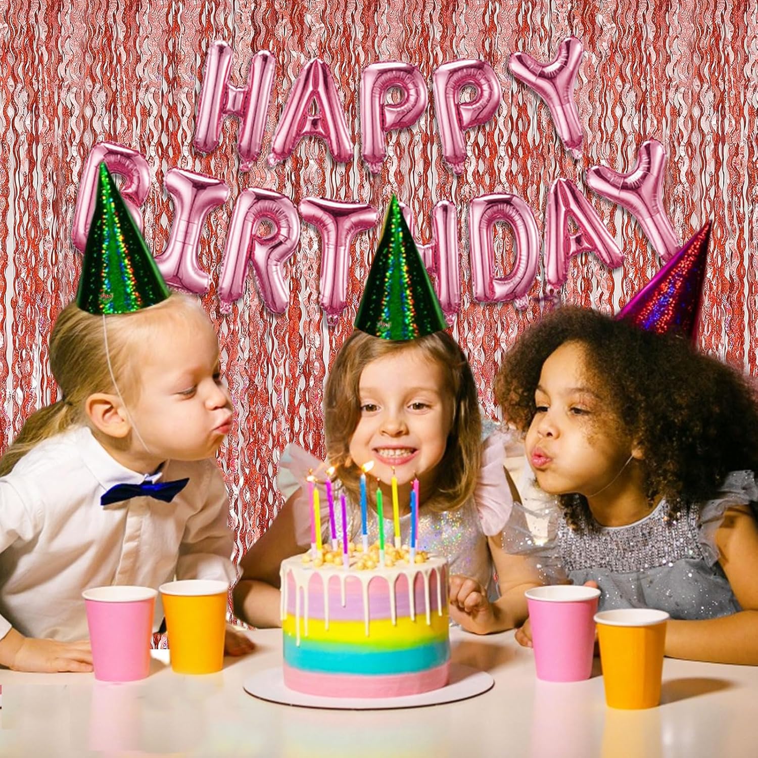 - Rose Gold Birthday Decorations:2 Pack, each curtains size is 3.28 ft x 6.56 ft, enough length foil fringe backdrops are perfect for the door, wall and table,feel free to cut to any length you want.