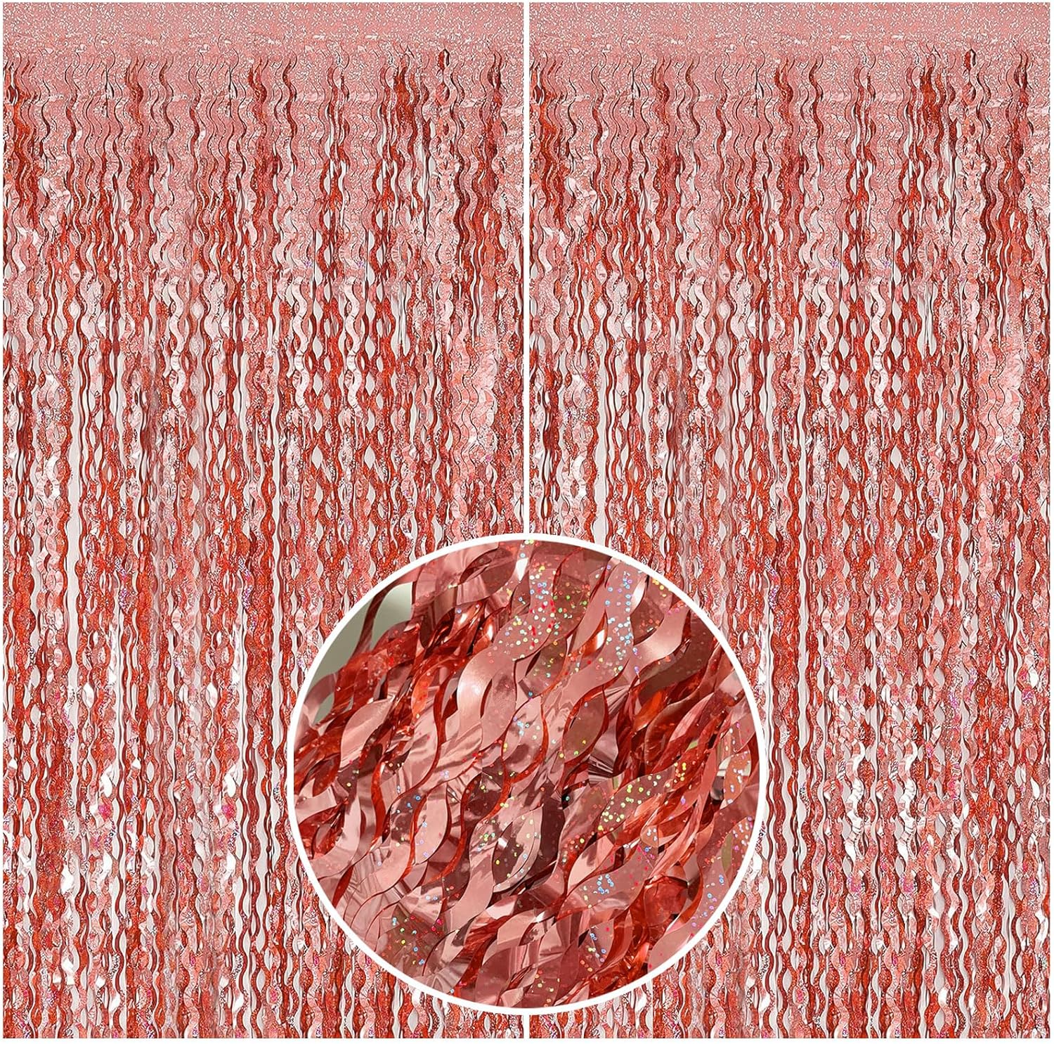 Rose Gold Tinsel Foil Fringe Curtains Wavy Backdrop for Parties Sparkle Metallic Wavy Foil Fringe Backdrop Curtain Photo Booth Props Birthday Graduation Wedding Bachelorette Party Decorations