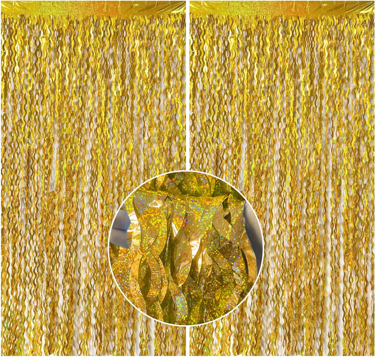 - Gold Backdrop :2 Pack, each curtains size is 3.28 ft x 6.56 ft, enough length foil fringe backdrops are perfect for the door, wall and table,feel free to cut to any length you want.