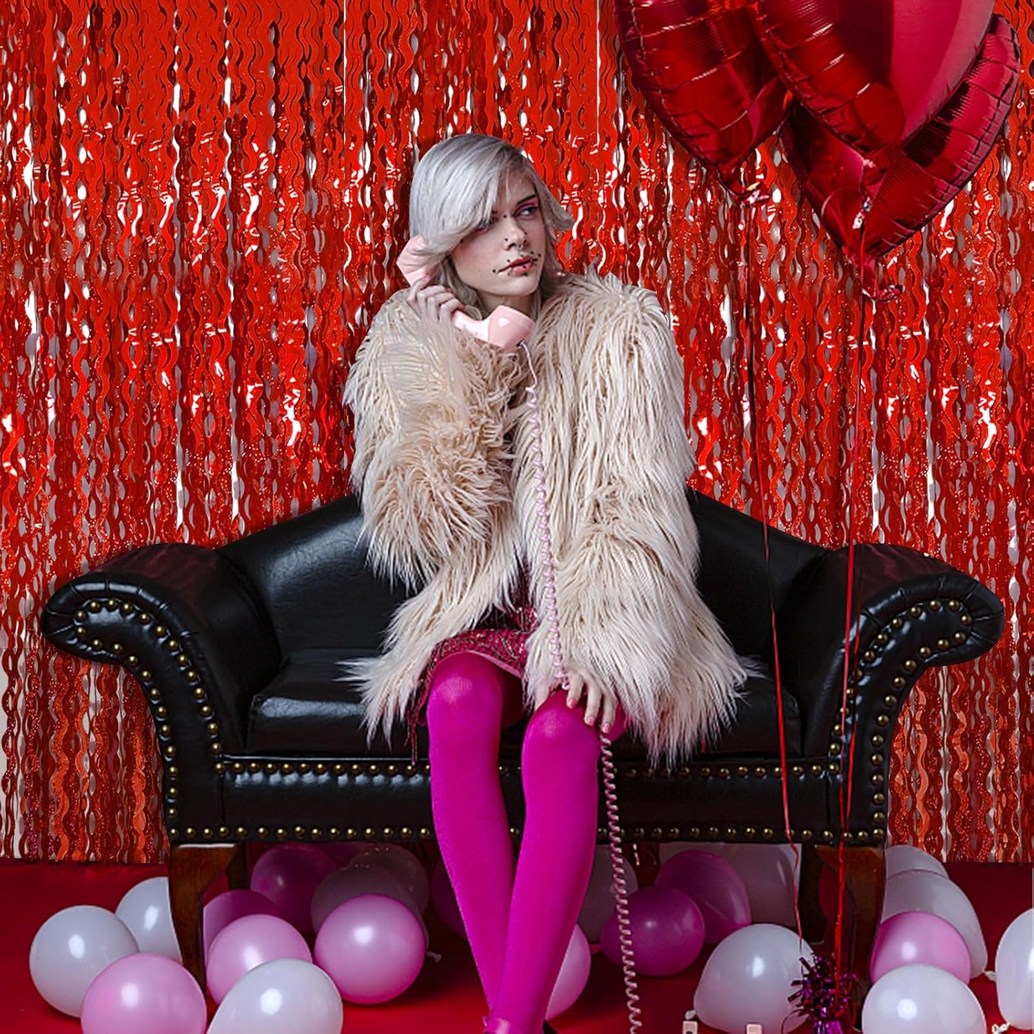 - Valentines Day Backdrop:5 Pack, each curtains size is 3.28 ft x 6.56 ft, enough length foil fringe backdrops are perfect for the door, wall and table,feel free to cut to any length you want.