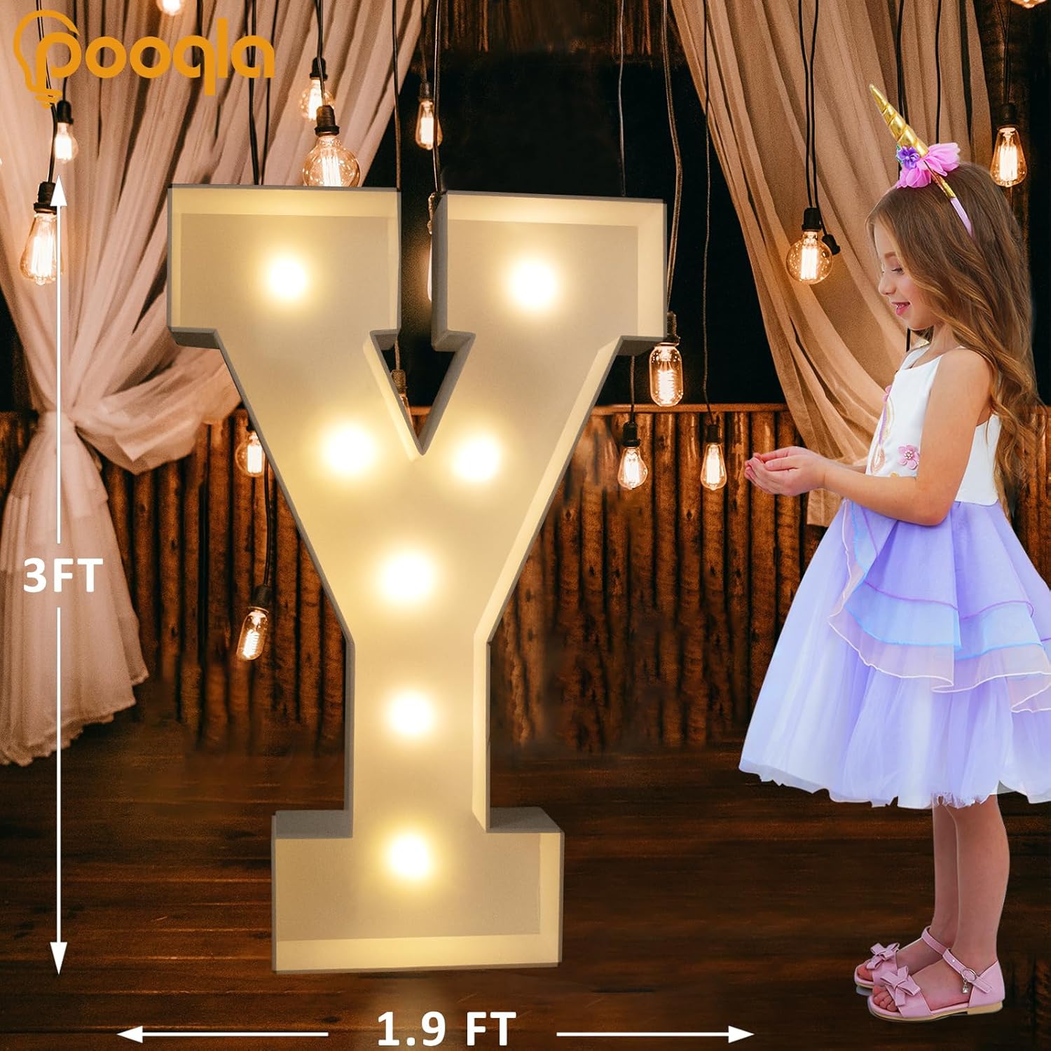 Pooqla 3FT Marquee Light Up Letters, Cool White and Warm White LED Big Mosaic Marquee Letters 3 Feet, Giant Letter Sign for Balloons Birthday Anniversary Wedding Party Decoration, Letter Y