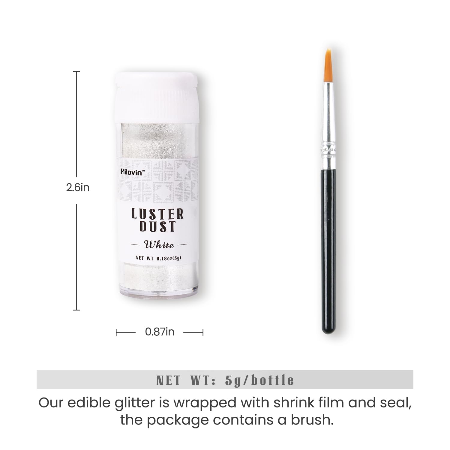 - White Edible Glitter: Made of food-grade mica powder and food coloring, odorless, and tasteless. It makes the food add a magical color and more vivid, and it doesn't affect the texture! Vegan, nut-free, gluten-free, adults or kids can be safe to use.