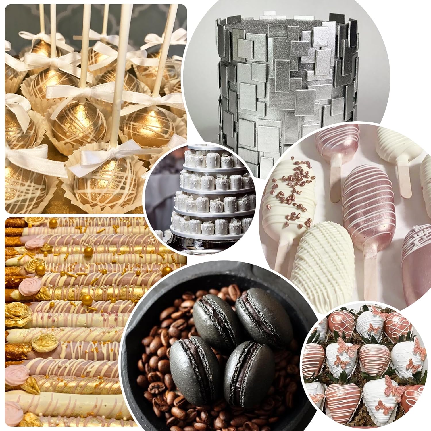 - WIDE RANGE OF USES - This food grade cake paints can add a luxury shimmer to cakes decorating, cookies, macarons, chocolate, fondant, and other baked goods. Perfect for on various occasions such as Valentine's Day, anniversaries, birthdays, Easter Christmas, Halloween, and Thanksgiving Day. Discover an unlimited world of creative metallic color.