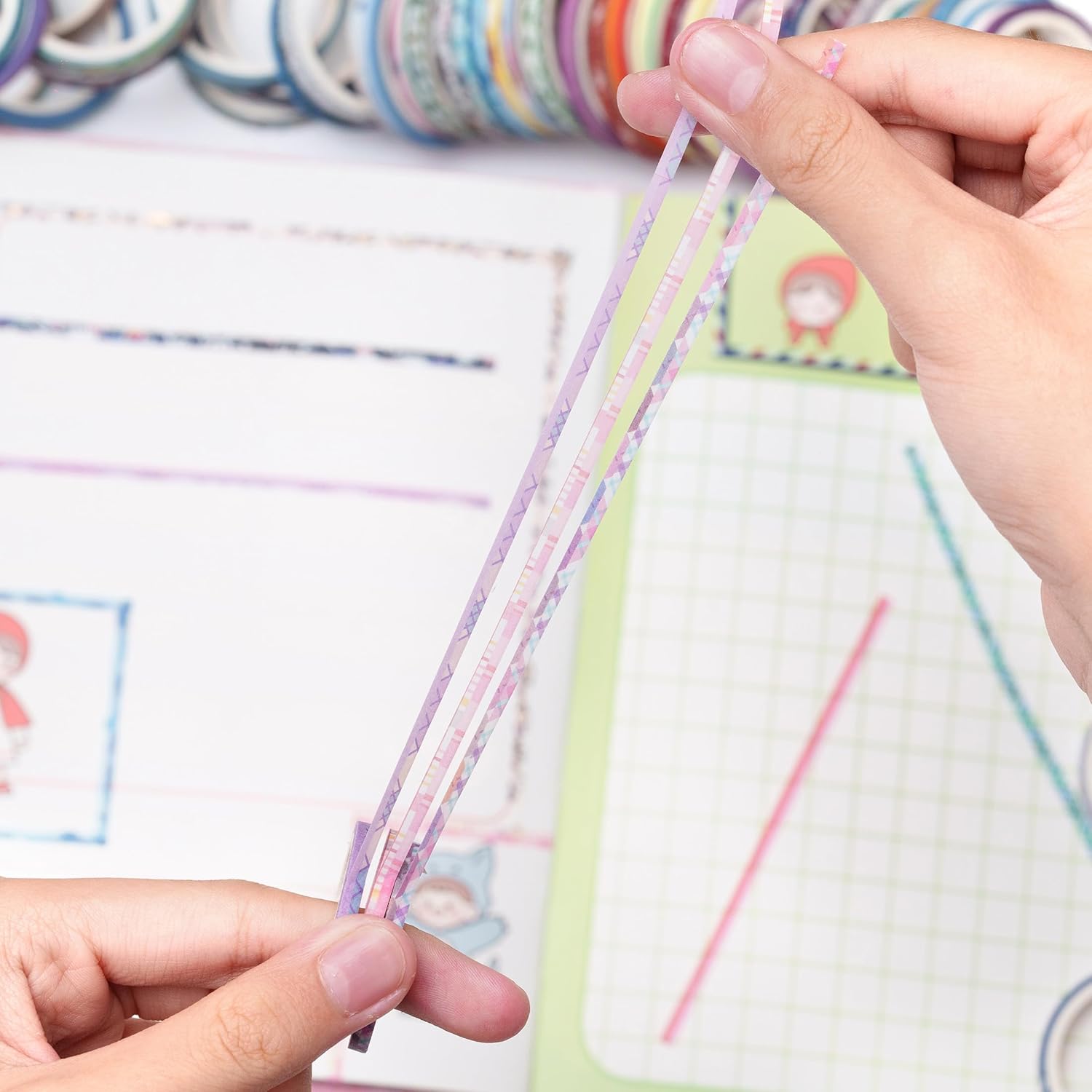 - MULTI-FUNCTION: The washi tape is a great way to your planners, scrapbooks, bullet journal, embellishments, card making, gift wrapping, parties, DIY craft project, decor, lipsticks box, pencil box, pens, charge cable, spoon handle, etc.