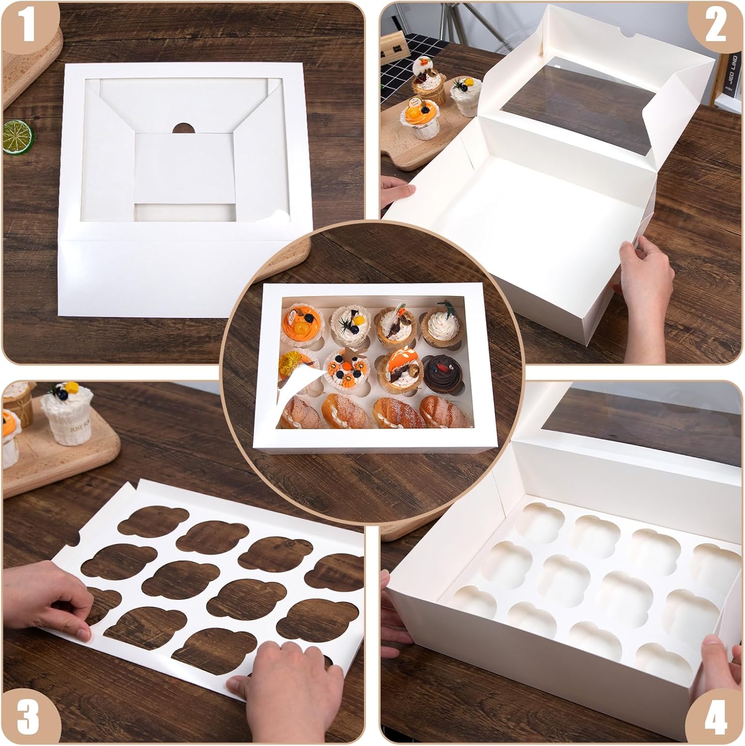 - EASY TO ASSEMBLE - Our cupcake box comes flat and pre-folded, which is easy and quick to fold and assemble box without glue or other tools. In order to achieve the perfect effect, please assemble the box according to the indentation of the bakery box.