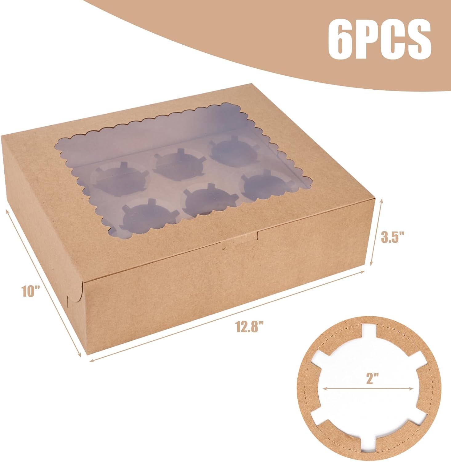 - SUPER VALUE BUNDLE - This package includes 6 cupcake boxes and 6 cupcake holder inserts. When assembled, each box measures 12.8 x 10 x 3.5inch, and each cupcake holder can accommodate 12 cupcakes.