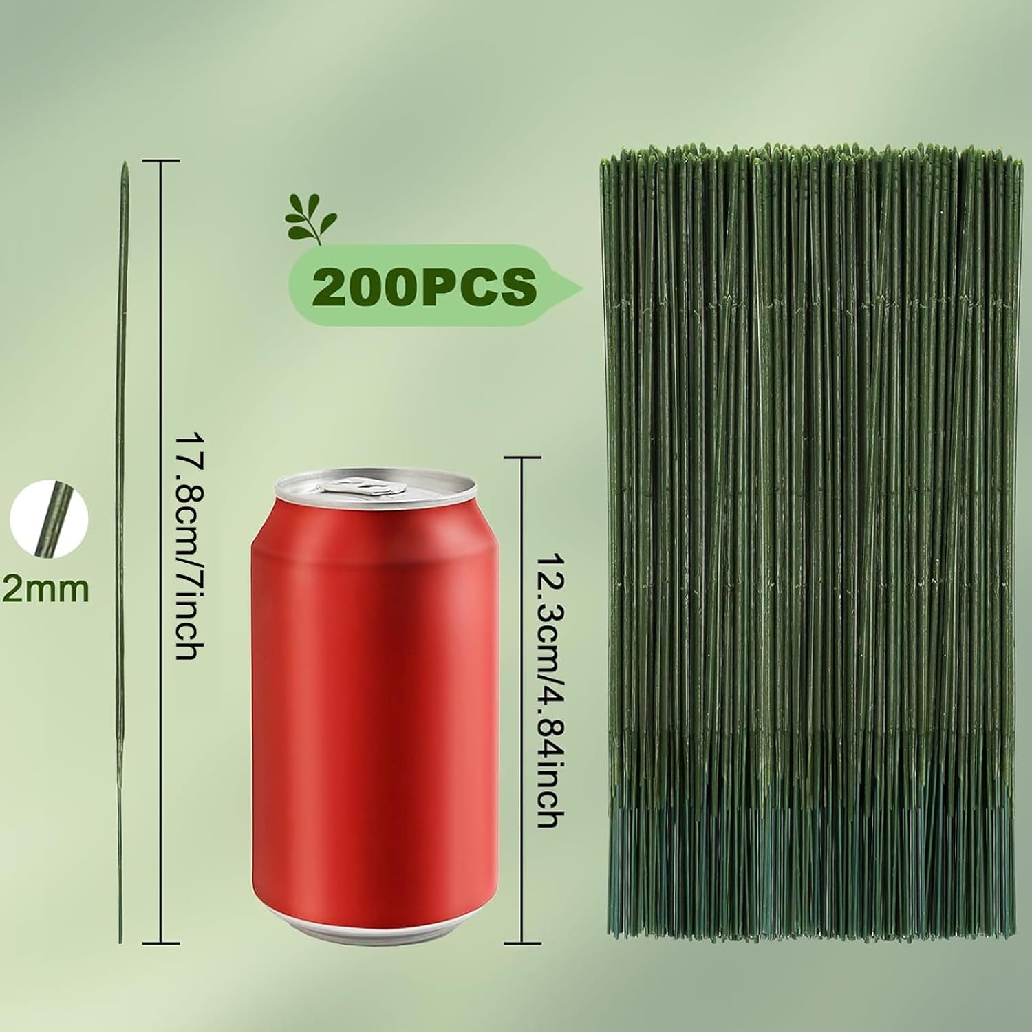 - Size: This length of a single floral stem wire is 17.8 cm/7 inch and the diameter is 2 mm, providing you with sufficient length and strong support, suitable for all kinds of flower production