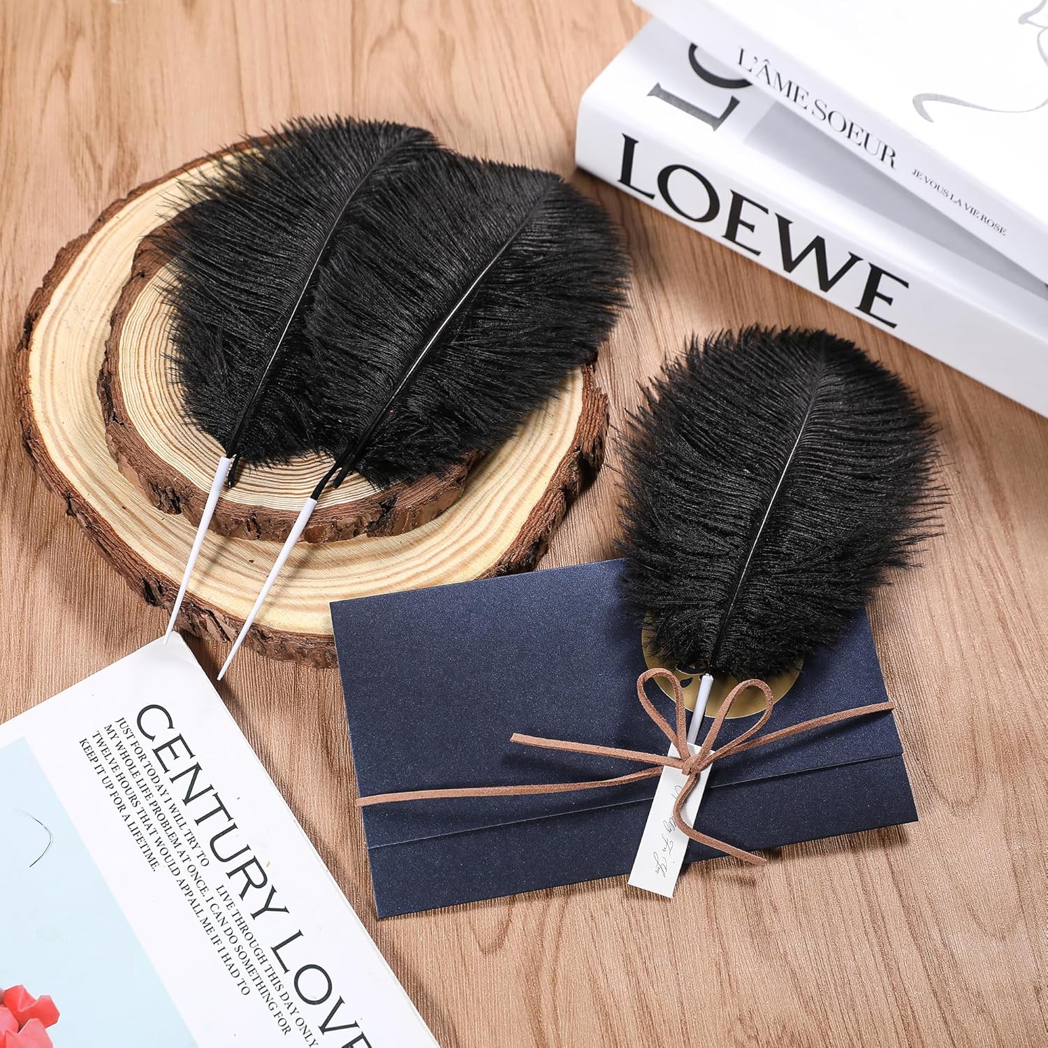 - Creative Ostrich Feathers Set: 30 pcs black ostrich feathers bulk 6-8 inches, 30 pcs small white sticks 3 inches long. Ostrich feathers kit total length can be up to 9-11 inches