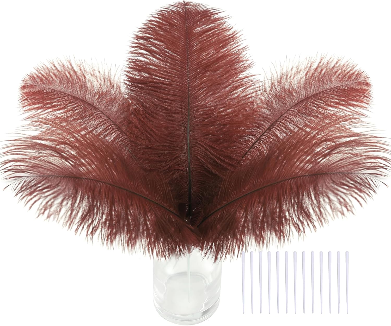 - Creative Ostrich Feathers Set: 30 pcs brown ostrich feathers bulk 6-8 inches, 30 pcs small white sticks 3 inches long. Ostrich feathers kit total length can be up to 9-11 inches