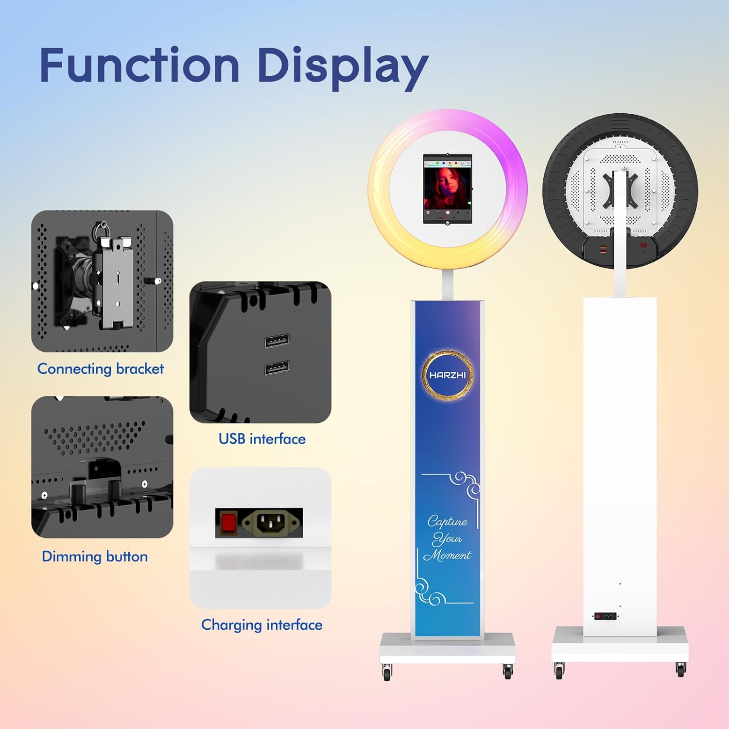 HARZHI Portable Photo Booth Compatible with Ipad, Large Lightbox Ipad Photo Booth for Christmas Wedding Party Provide ChackTok Software APP VIP, Free Custome Logo, Flight Case White