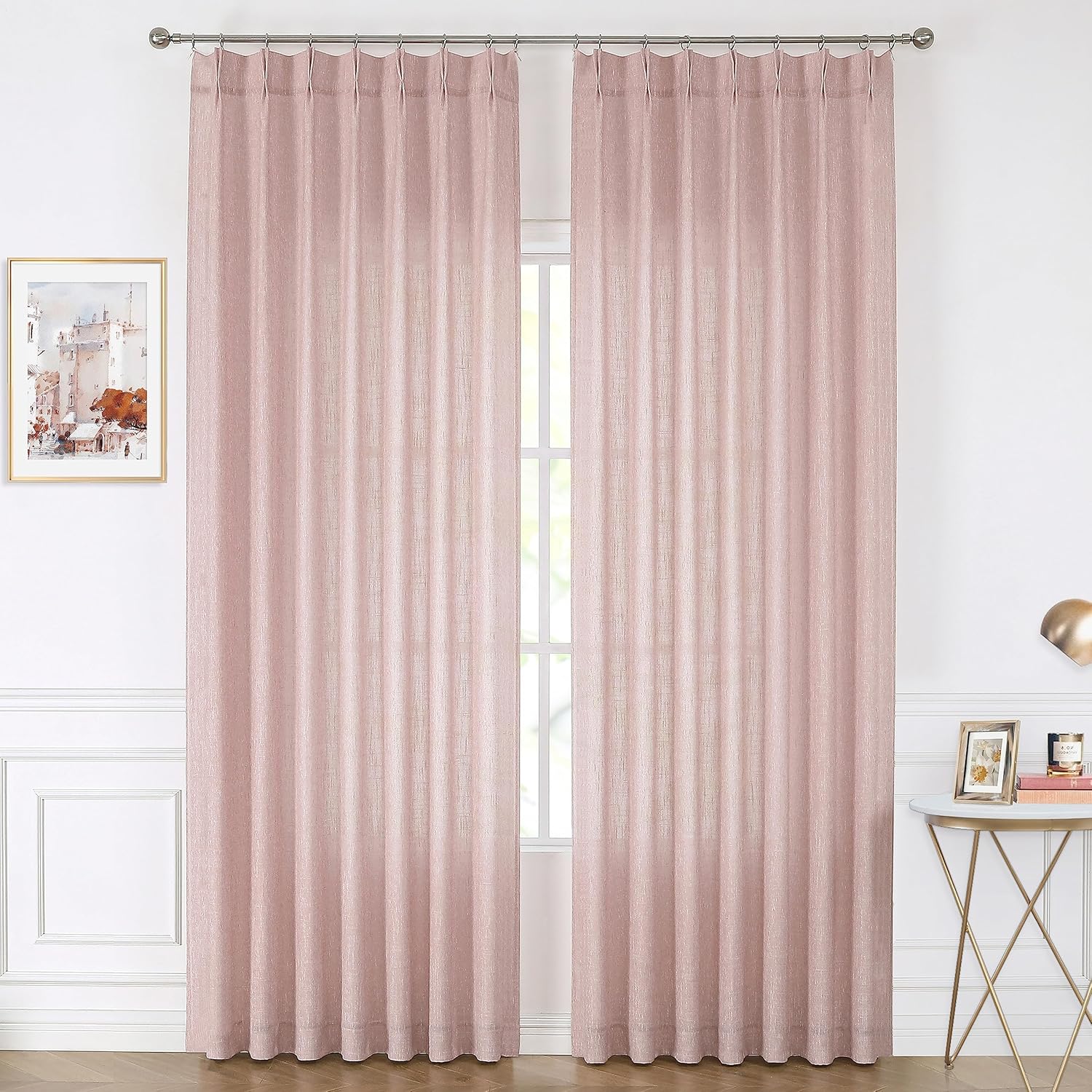 Vision Home Pink Pinch Pleated Semi Sheer Curtains for Girls Bedroom Living Room Textured Light Filtering Window Curtains 102 inch Rayon Blended Pinch Pleat Pink Drapes with Hooks 2 Panels 40"Wx102"L