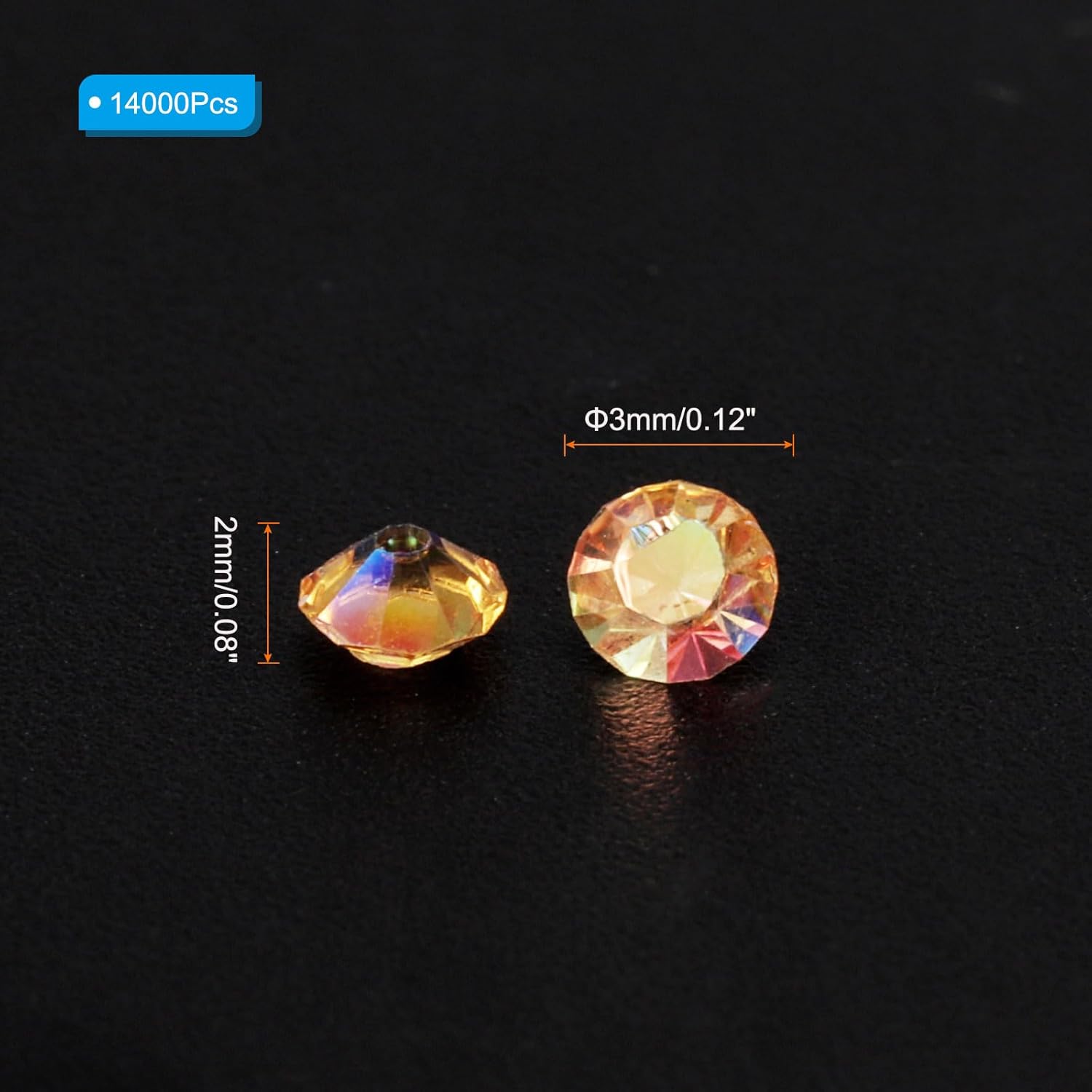 - Color: Yellow AB; Material: Acrylic; Size: 3mm x 2mm/ 0.12 x 0.08 inch (Dia.x H); Packing List: 14000Pcs x Acrylic crystal diamonds