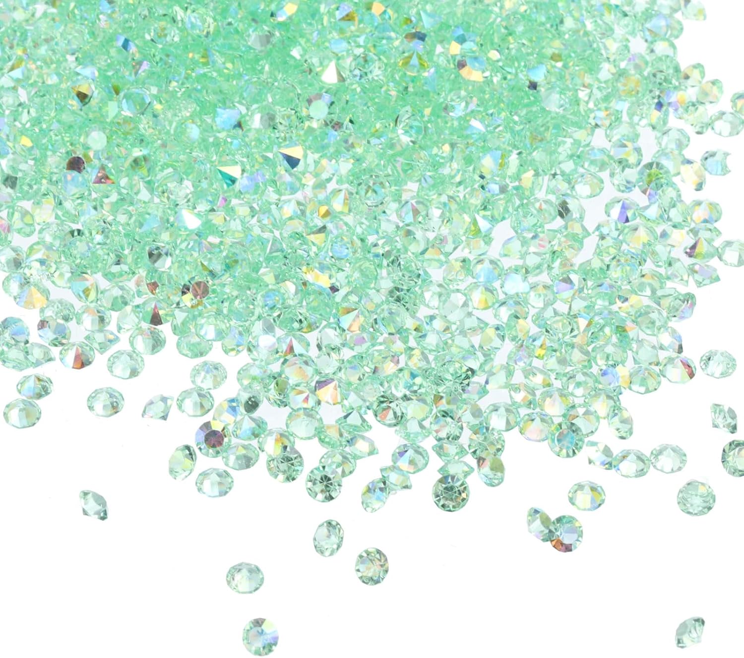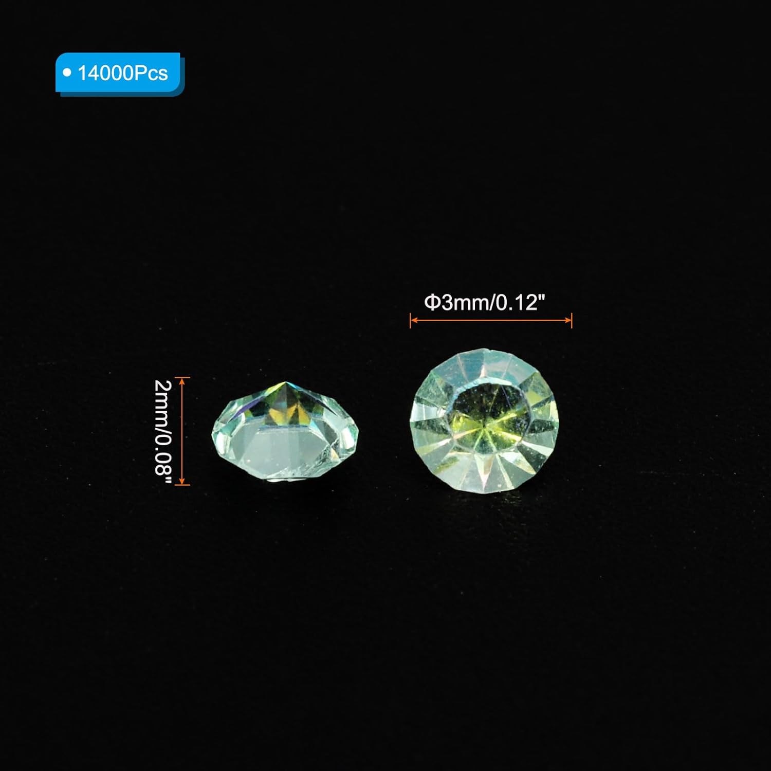 - Color: Lake Blue AB; Material: Acrylic; Size: 3mm x 2mm/ 0.12 x 0.08 inch (Dia.x H); Packing List: 14000Pcs x Acrylic crystal diamonds