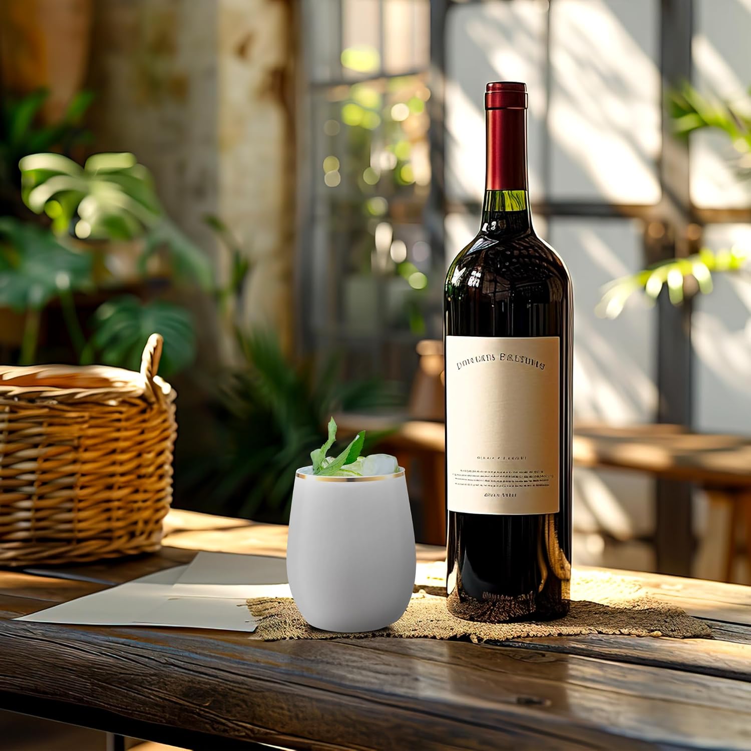 - ELEGANT & SOPHISTICATED DESIGN: Elevate your events effortlessly with these chic white and gold-rimmed stemless wine glasses, beautifully designed for all celebrations.