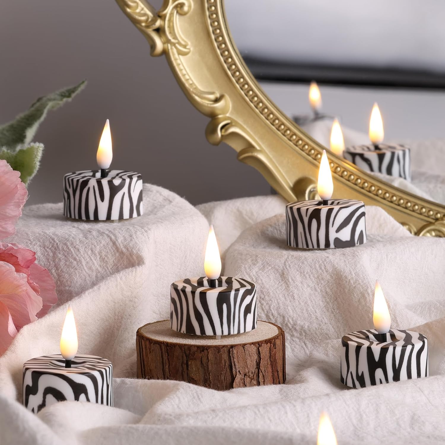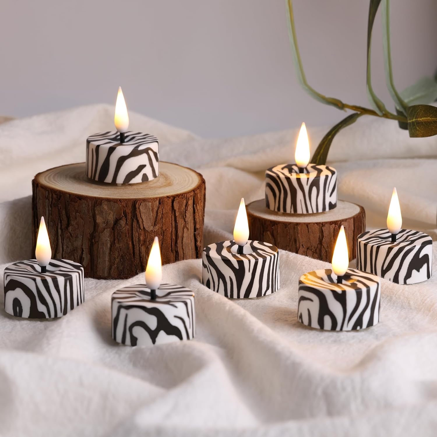 - Attractive Decor & Gift Option - this unique set of zebras pattern LED tealights is perfect for daily home decor, also can be placed in your favorite tea candle holders or given as gifts