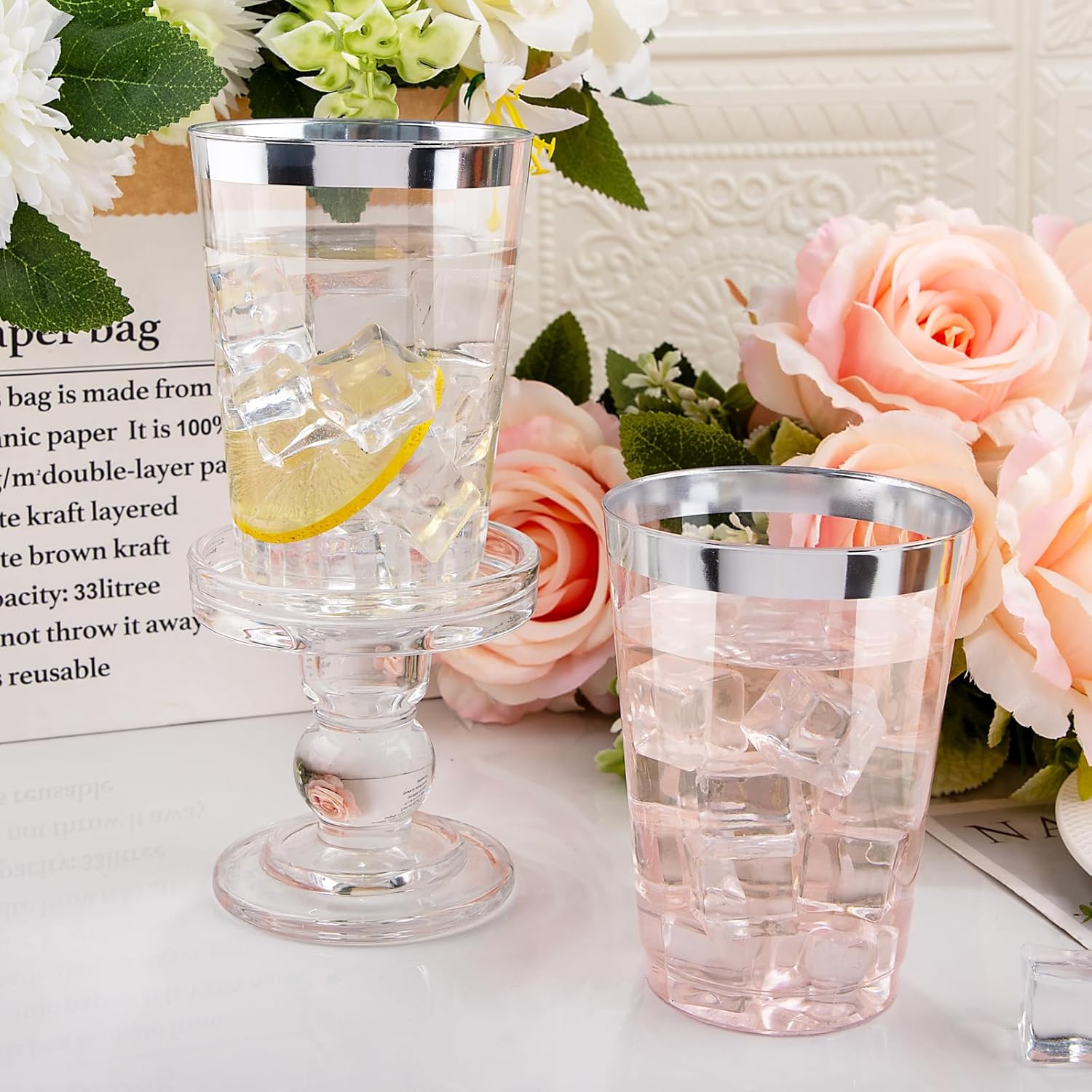 - Easy to Use and Clean: These silver rimmed drinking glasses can be thrown away after using to saving your time and energy, and you can also choose to clean them by hands and use for your next party.