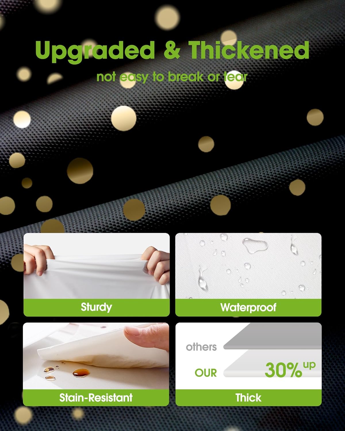 - PREMIUM QUALITY: Made from thickened PEVA material, Pureegg party table cloths disposable are waterproof and stain-resistant. They protect your table from spills and stains without easily ripping or tearing.