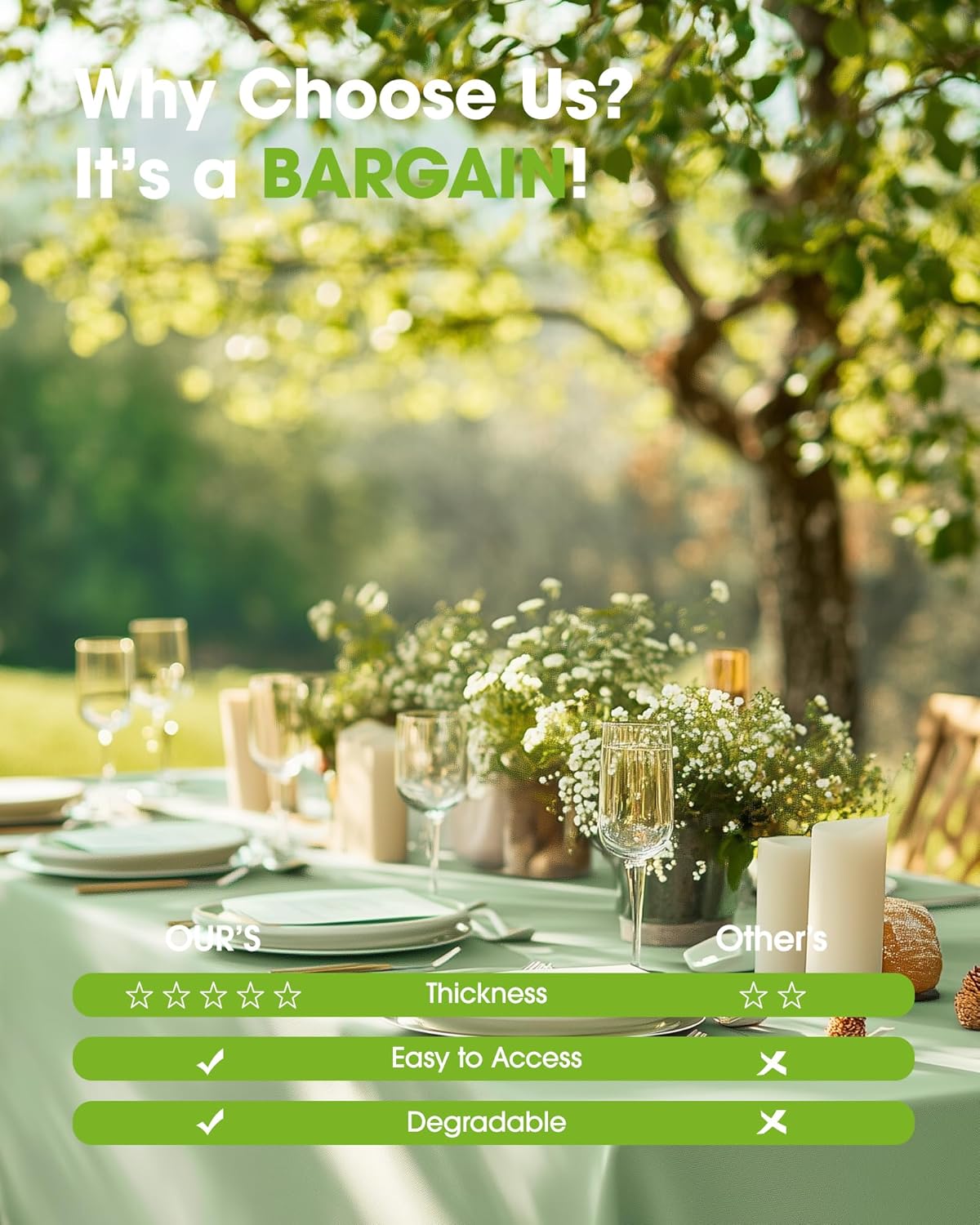 - FOR ALL OCCASIONS: With the universal size and multiple color options, our disposable table cloths are widely applicable to kinds of events, parties, church functions, work events, one-time use, and even practical everyday use.