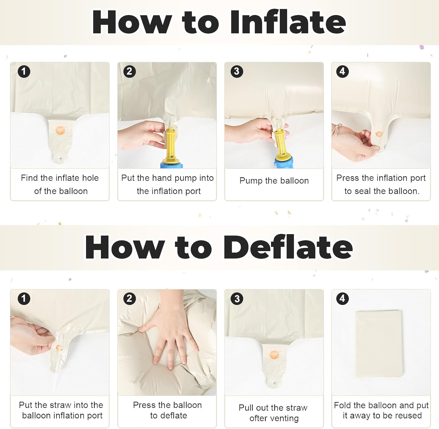 - 🎈 High Quality Material: Our cream alphabet balloons are made from grade mylar material, safe, non-Toxic, high quality, durability, long-lasting, self-inflating and reusable. It can be filled with air or helium, and 90% filling is enough to hold it for a long time. After the inflation is completed, just pinch the inflation port to complete the inflation.