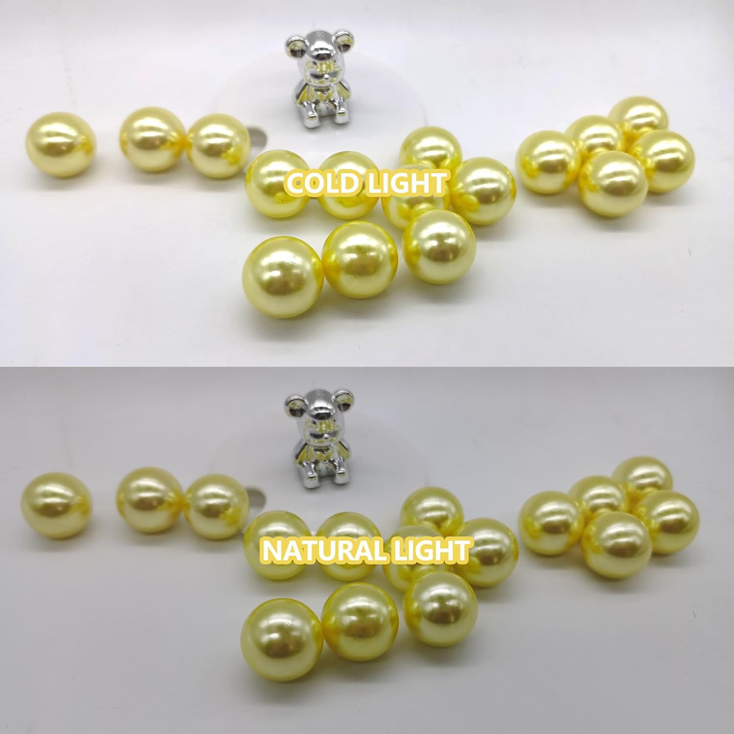 100PCS Yellow Faux Pearls Beads for Centerpiece Vases, Vase Filler Faux Pearls, No Holes Filler Beads for Party Anniversary Birthday Wedding Table Decor, 14/20/30mm