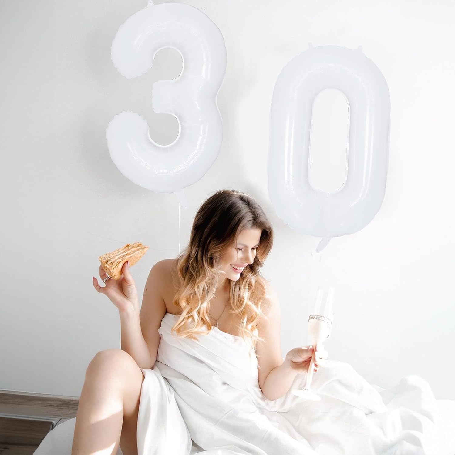 - 💓 White Number 30 Balloon: Our package included 40 inch number 3 & 0 balloon and 1pcs straw. Simply inflate the balloon using the straw, and you're ready to party! White number foil balloons are the best for women men birthday party decoration.