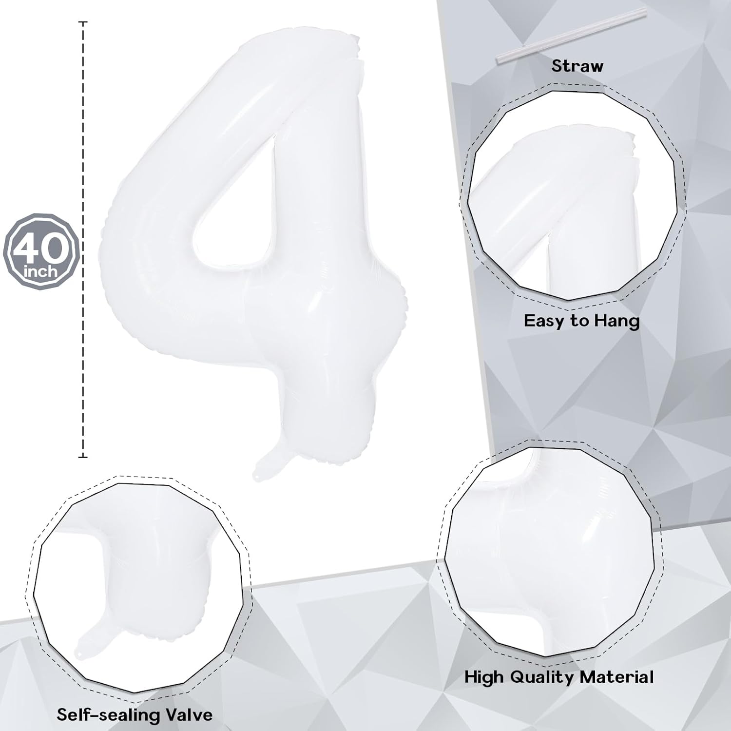 - 💓 White Number 40 Balloon: Our package included 40 inch number 4 & 0 balloon and 1pcs straw. Simply inflate the balloon using the straw, and you're ready to party! White number foil balloons are the best for women men birthday party decoration.