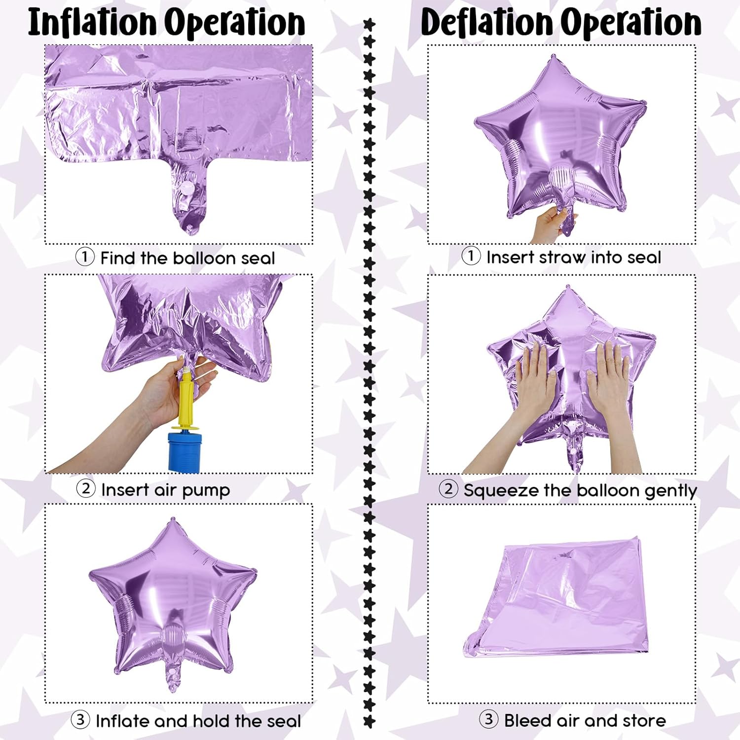- Easy to Set Up: The stars foil balloons can inflate with helium or air. It is recommended to inflate to 90% to prevent the balloon from bursting.