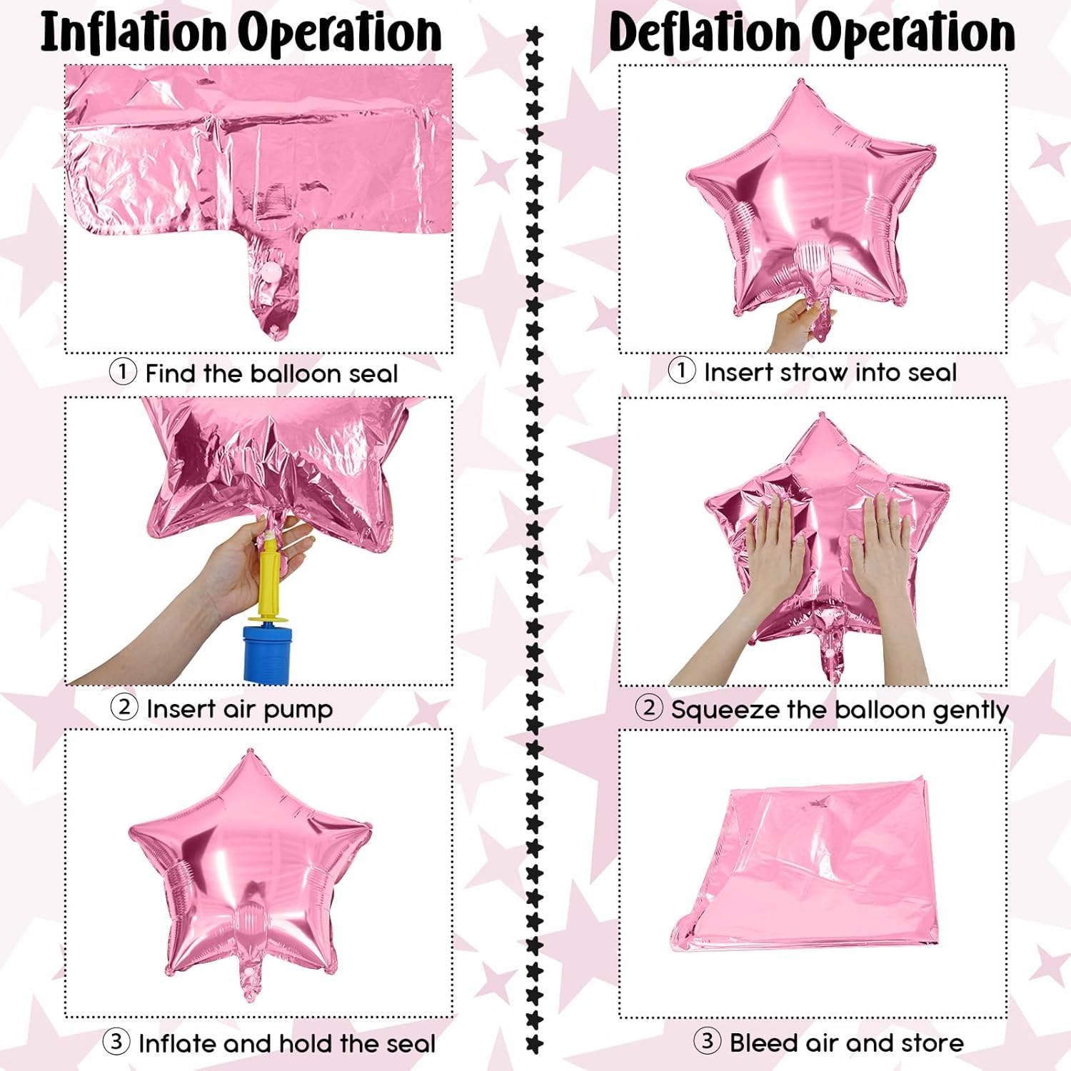 - Pink White Stars Party Balloons: Pack of 10, designed with Giant 18 inch stars foil balloons, each balloons set comes with a straw and ribbon.