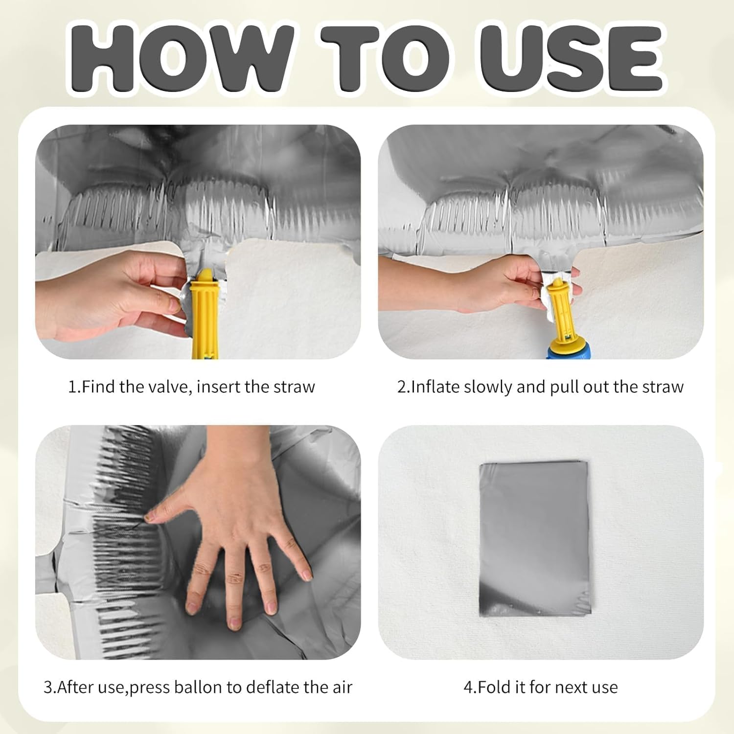 - Easy To Use:These metallic silver heart foil balloons are suitable for helium or air. Easy to inflate using the a straw or an air handheld pump. This heart foil balloon adopts self-sealing design, you only need to press the inflation port to seal it after finishing inflate. The balloons are reusable and can be folded up for next use after being deflated with a straw.
