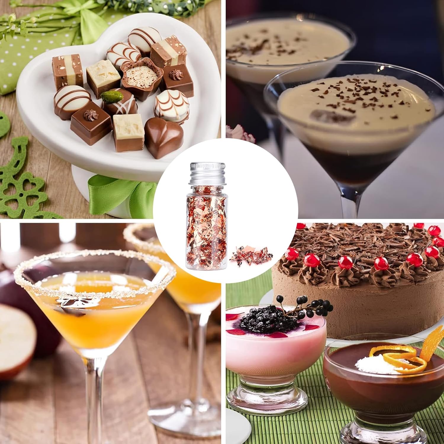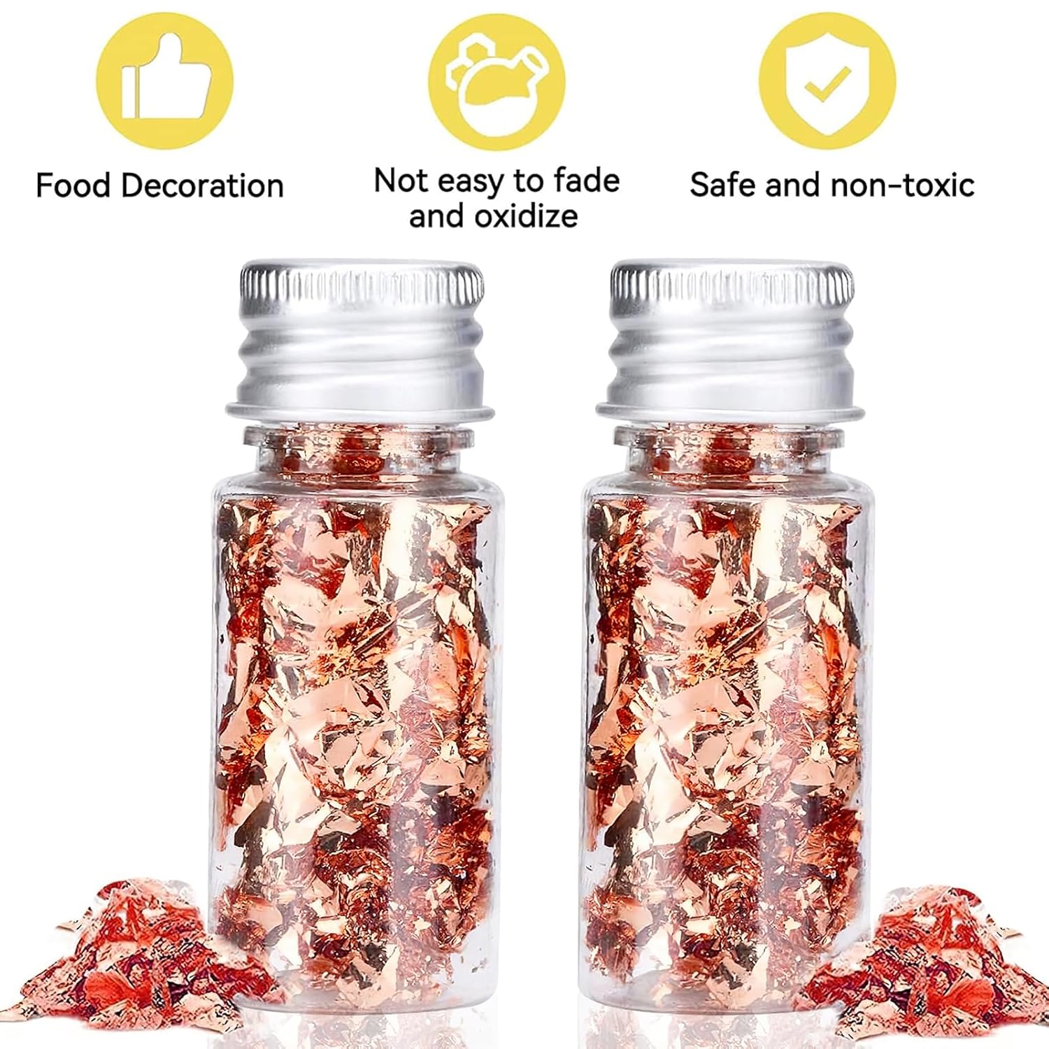 - 【Edible Gold Foil Flakes Feature 】Gold leaf sheets can create a stunnings sparkling effect that will make your food look absolutely special! The glittering imitation copper foil will make your house had an air of luxury.