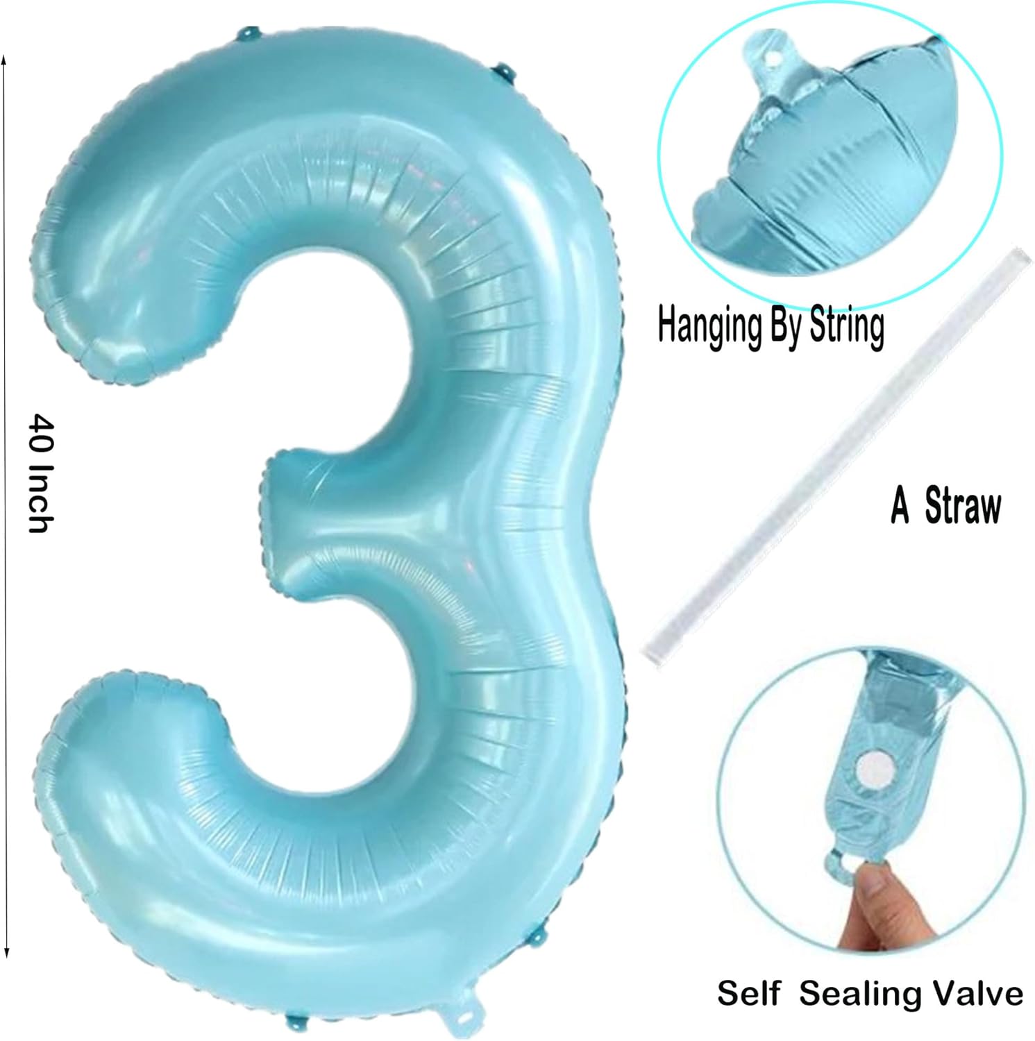 - 【Reusable 】: Giant light blue number 3 balloon can be reusable repeatedly with self-sealing valve, convenient to inflate and deflate by an air. After party ending, the number balloons will easy to deflate and store for next time use. Do not overfill the balloon to avoid sunburn, overheating, sharp objects and excessive friction.
