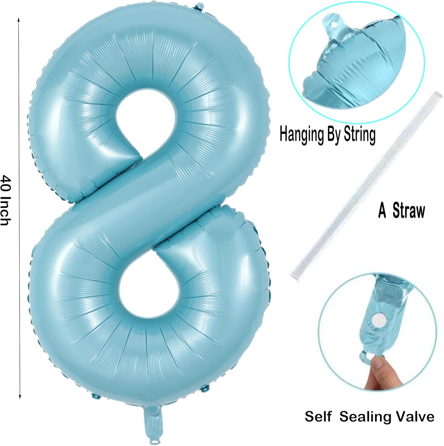 - 【Easy to Inflate & Deflate】: The film light blue digital balloons only need to be filled with 90% air or helium. when you want to fill the balloon with air, just put the straw or insert the helium valve into the plastic valve at the bottom of the figure and blow slowly. When the balloon is fully inflated, remove the straw and squeeze the self-sealing plastic valve. If you want your balloon to float in the air, you can go to your local convenience store and fill it with helium.