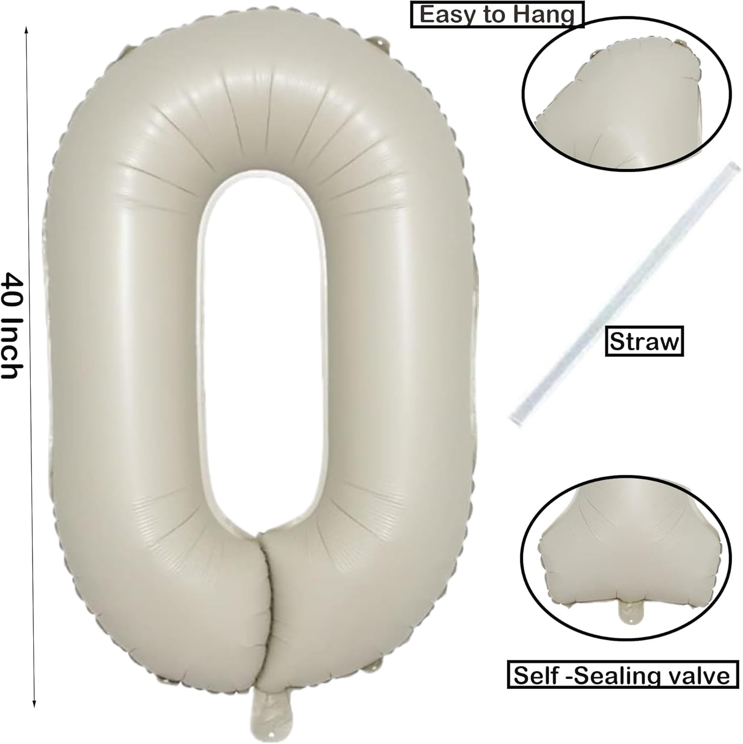 40 Inch Cream White Number 0 Balloon Mylar Big Foil Helium 0 10 20 30 40 50 Number for Party Decorations,Digital Birthday Party Wedding Boy Baby Shower Decorations (Cream No 0)