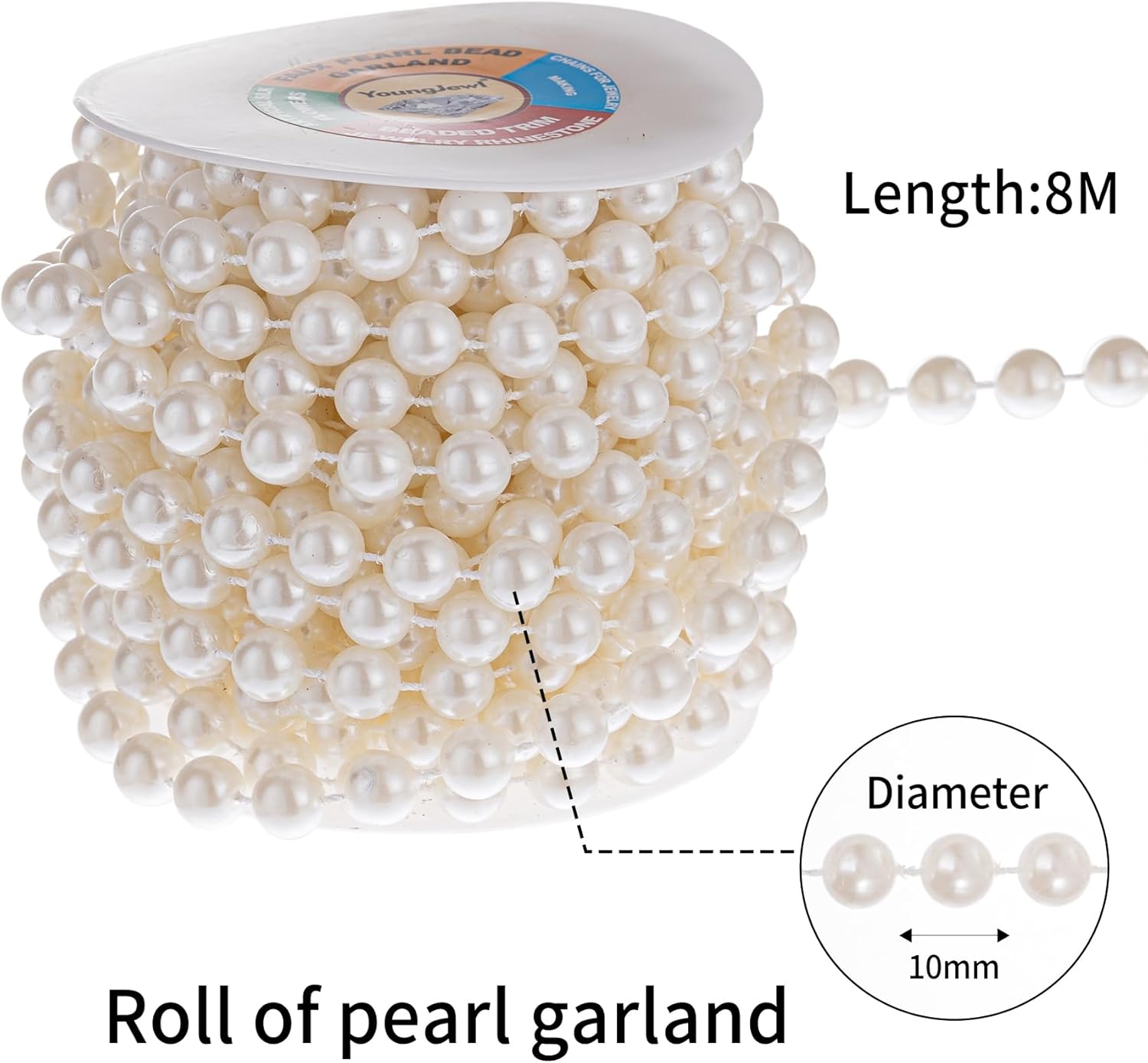 - Lenght:8m/27ft per roll,Beads Size:10mm