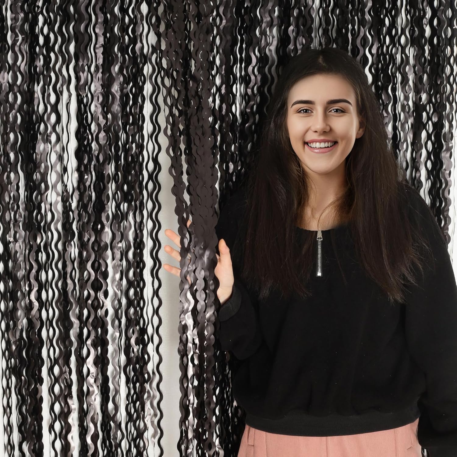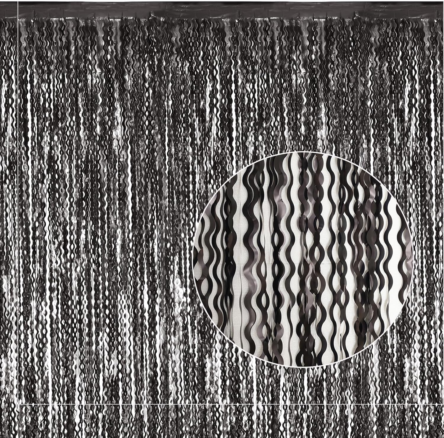 - Package Contents: 4 pack wavy foil fringe curtains,each curtain is 3.3ft x6.6ft,You can cut the metallic backdrop into the suitable length for use,Wonderful accessories for decorating doors and walls