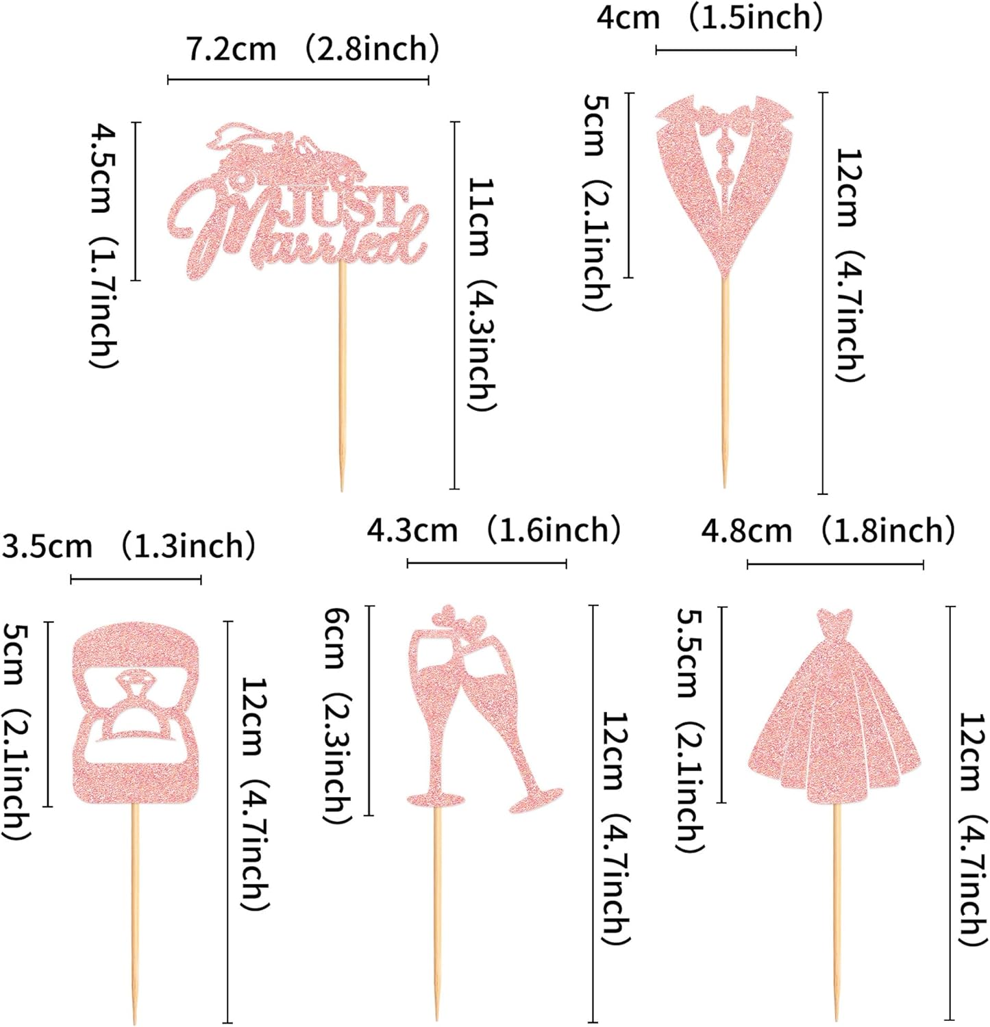 - 🍰【Unique design】:Sparkling adorable bride and groom cupcake toppers makes your cupcakes become the focus of bridal shower or wedding party. All cupcake toppers are pre-assembled, it can save much time for you.