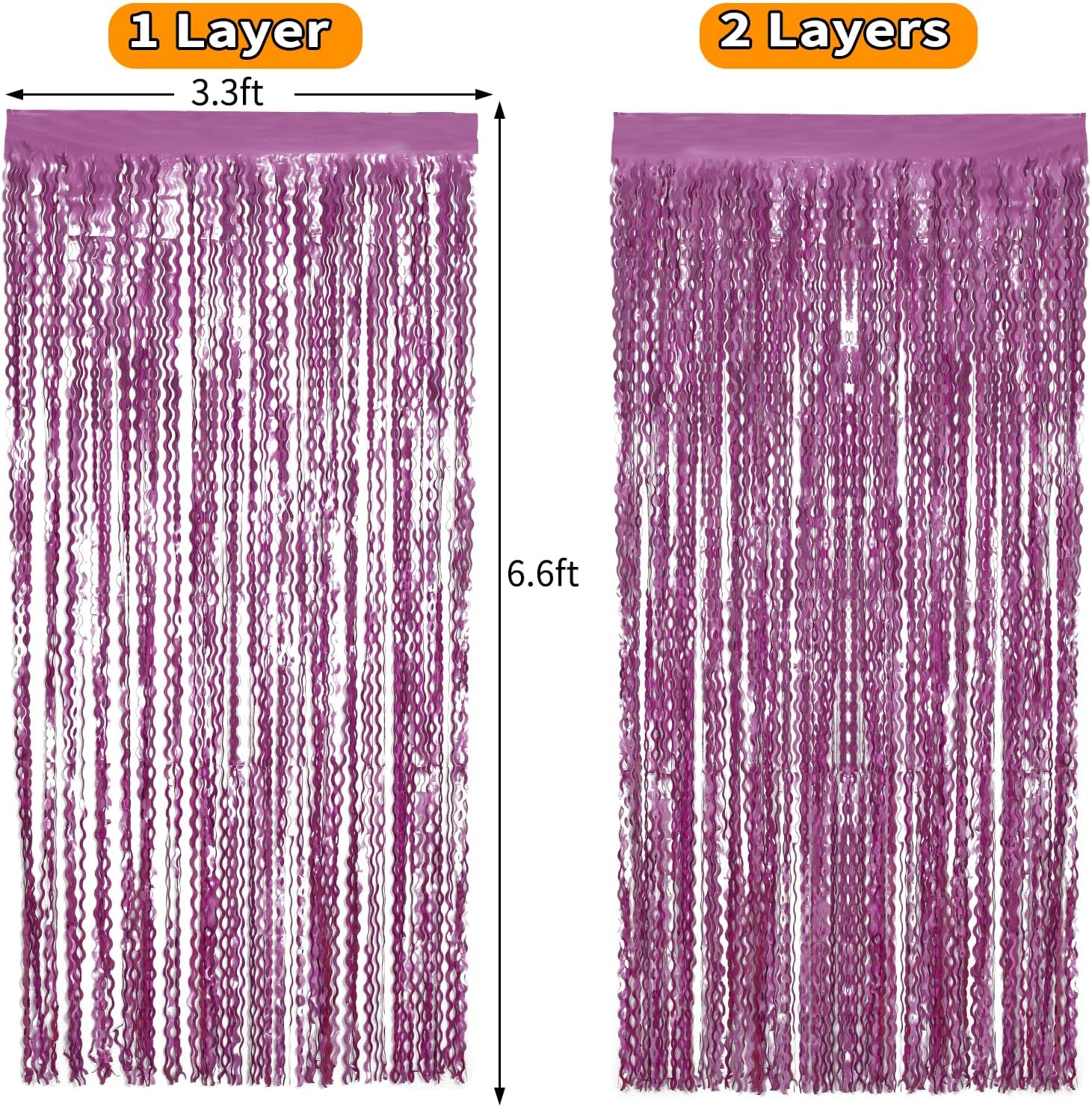 Purple Foil Curtains - 4 Pack 3.3 ft x 6.6 ft Wavy Fringe Curtain Backdrop for Party Photo Booth Props Decoration Mermaid Euphoria Themed | Purple Streamers for Mardi Gras Decorations